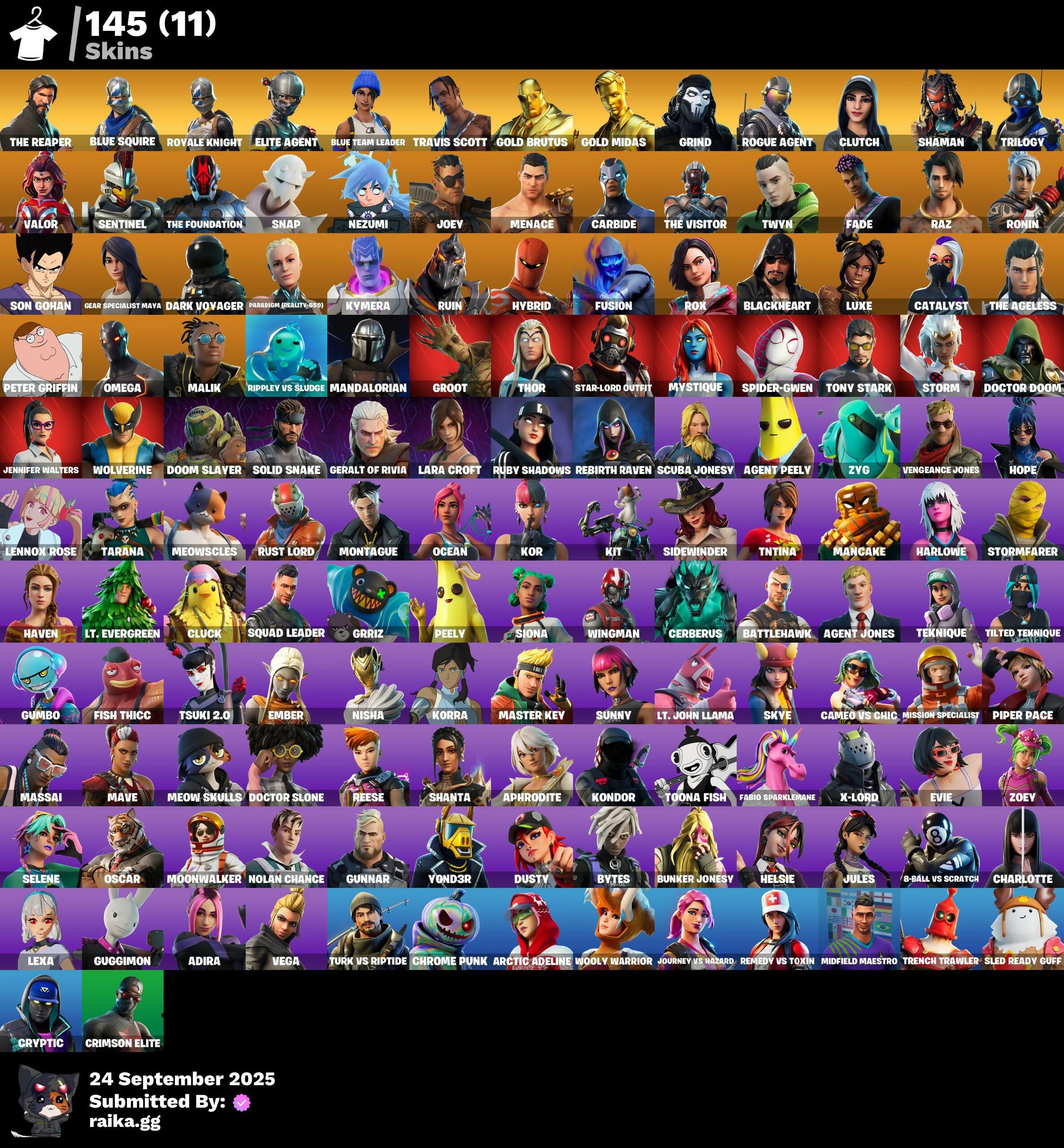 [PC/PSN/XBOX] 145 skins | The Reaper | Blue Squire | Royale Knight | Elite Agent | Blue Team Leader | Travis Scott | Gold Brutus | Gold Midas | Grind | 500 VB / FN