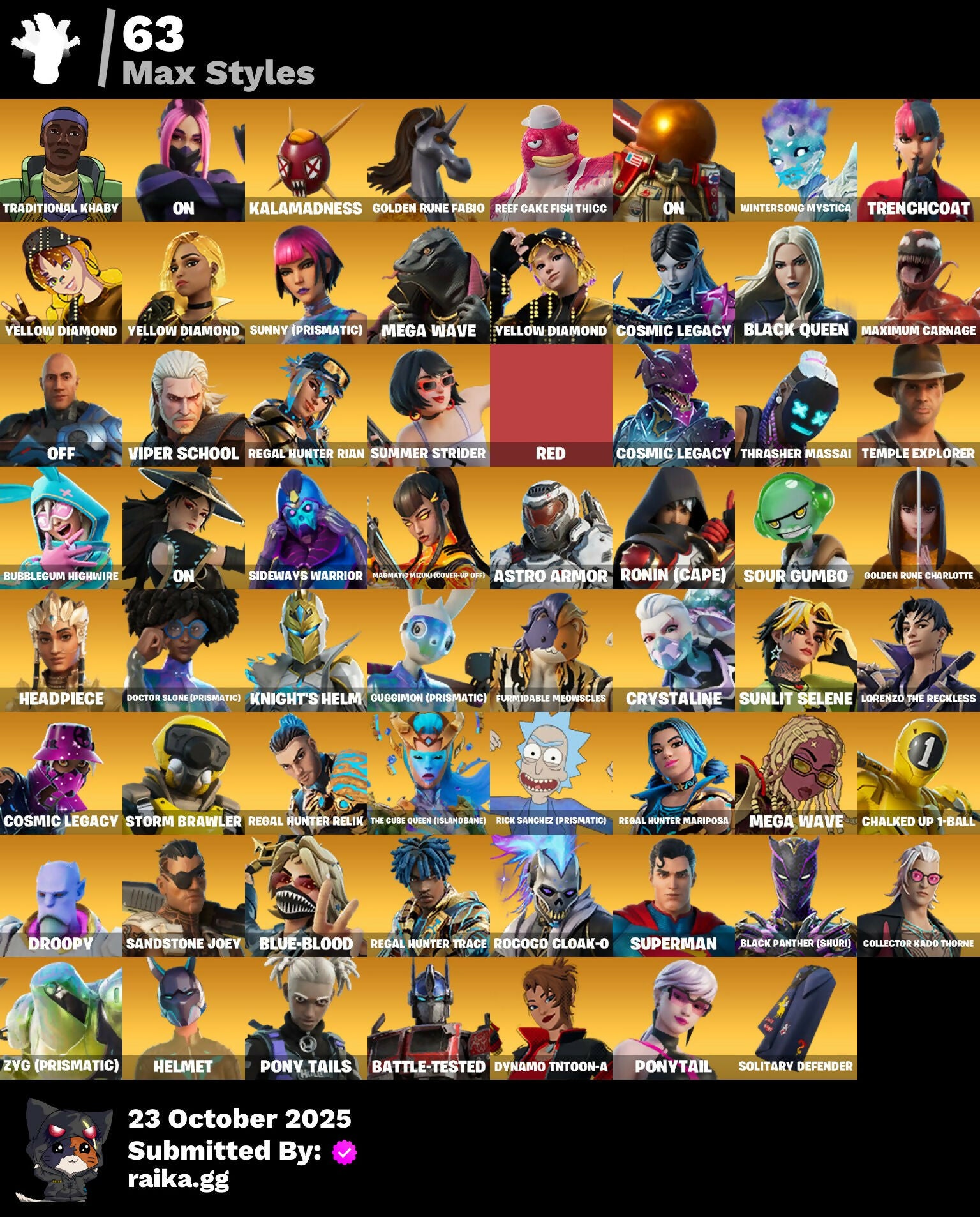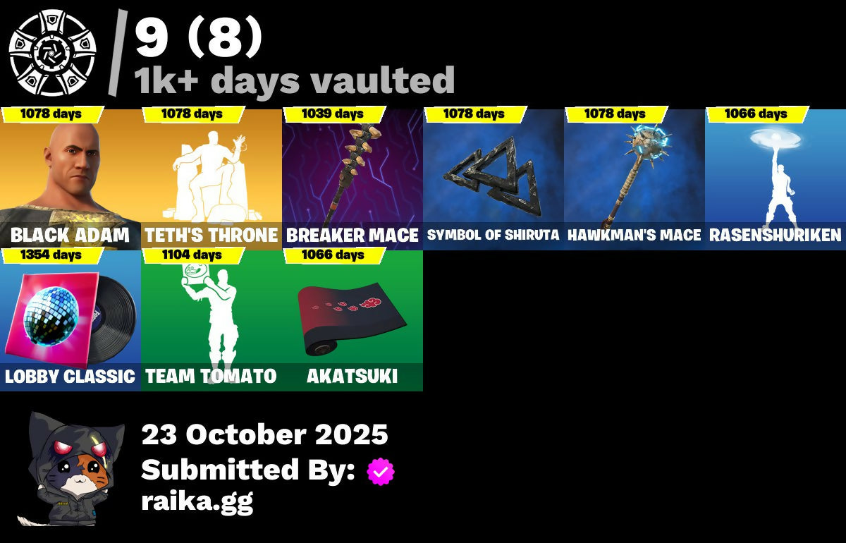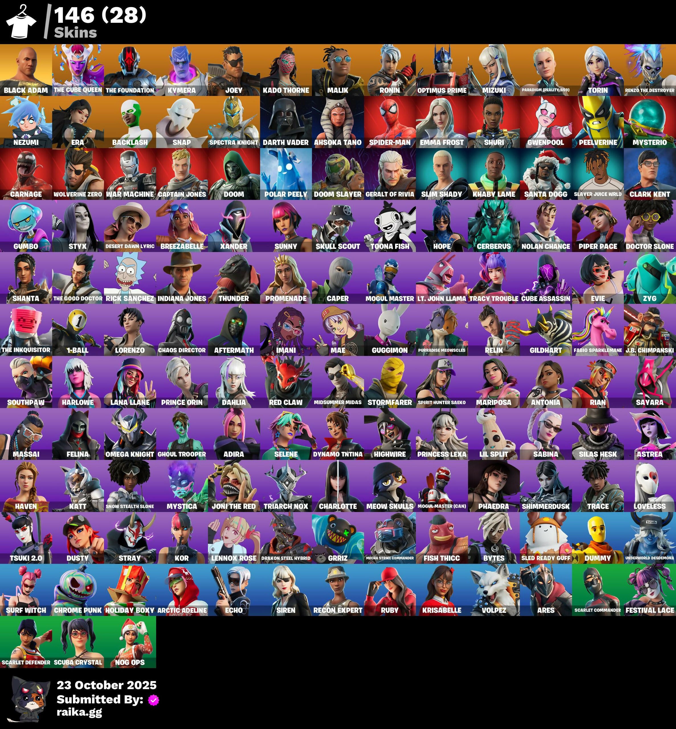 [PC/PSN/XBOX] 146 skins | Black Adam | The Cube Queen | The Foundation | Kymera | Joey | Kado Thorne | Malik | Ronin | Optimus Prime | Mizuki | 0 VB / FN