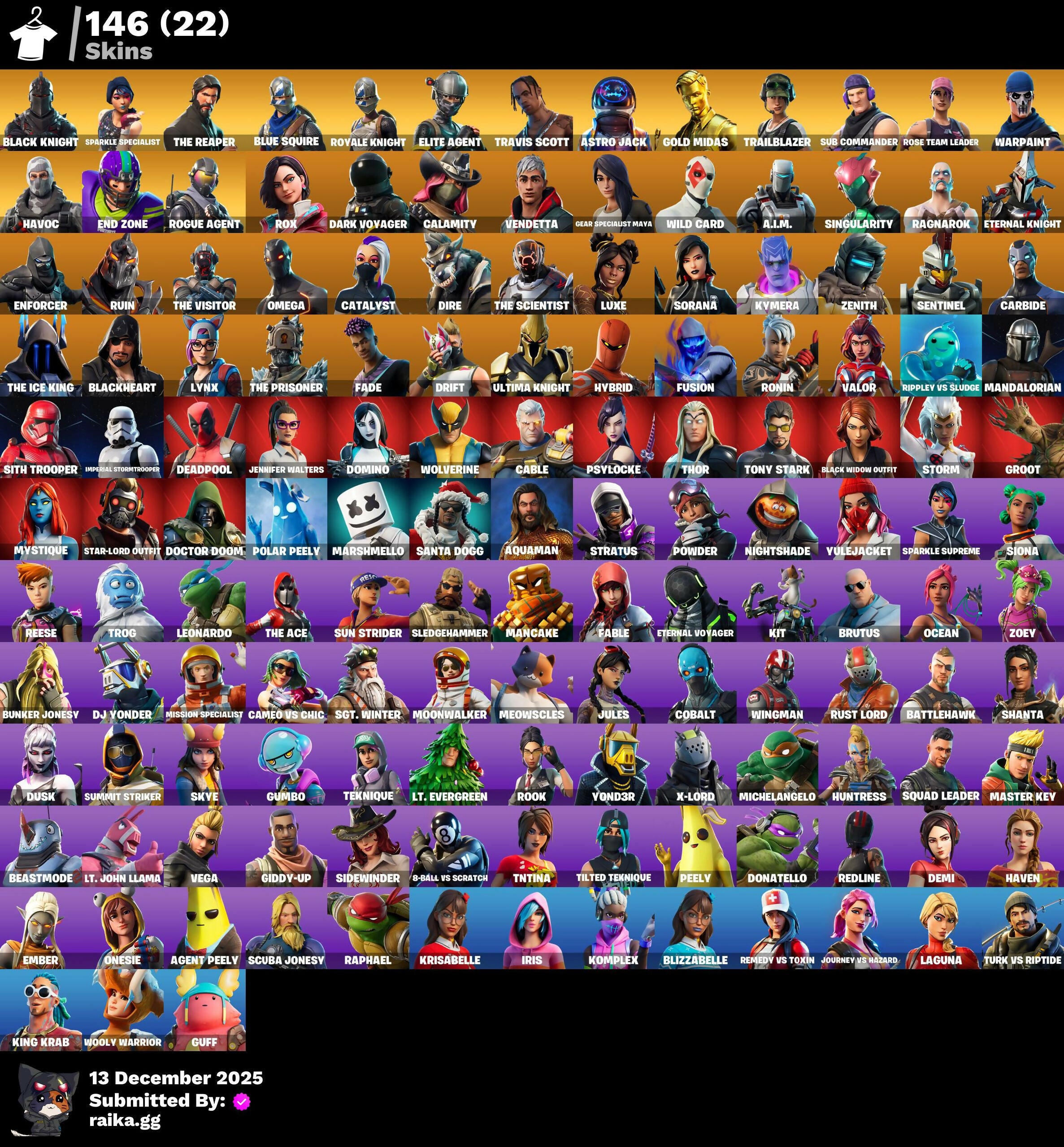 [PC/PSN/XBOX] 146 skins | OG STW | Black Knight |Travis Scott |Sparkle Specialist | The Reaper | Blue Squire | Royale Knight | Elite Agent | Astro Jack | 850 VB