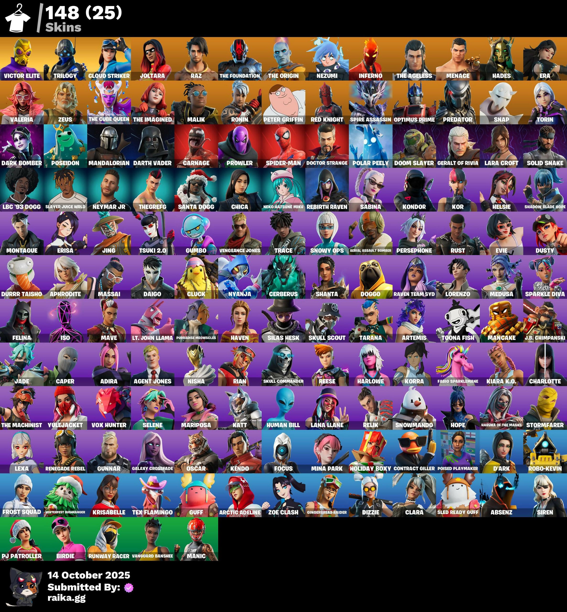 [PC/PSN/XBOX] 148 skins | Victor Elite | Trilogy | Cloud Striker | Joltara | Raz | The Foundation | The Origin | Nezumi | Inferno | The Ageless | Menace | 350 VB / FN