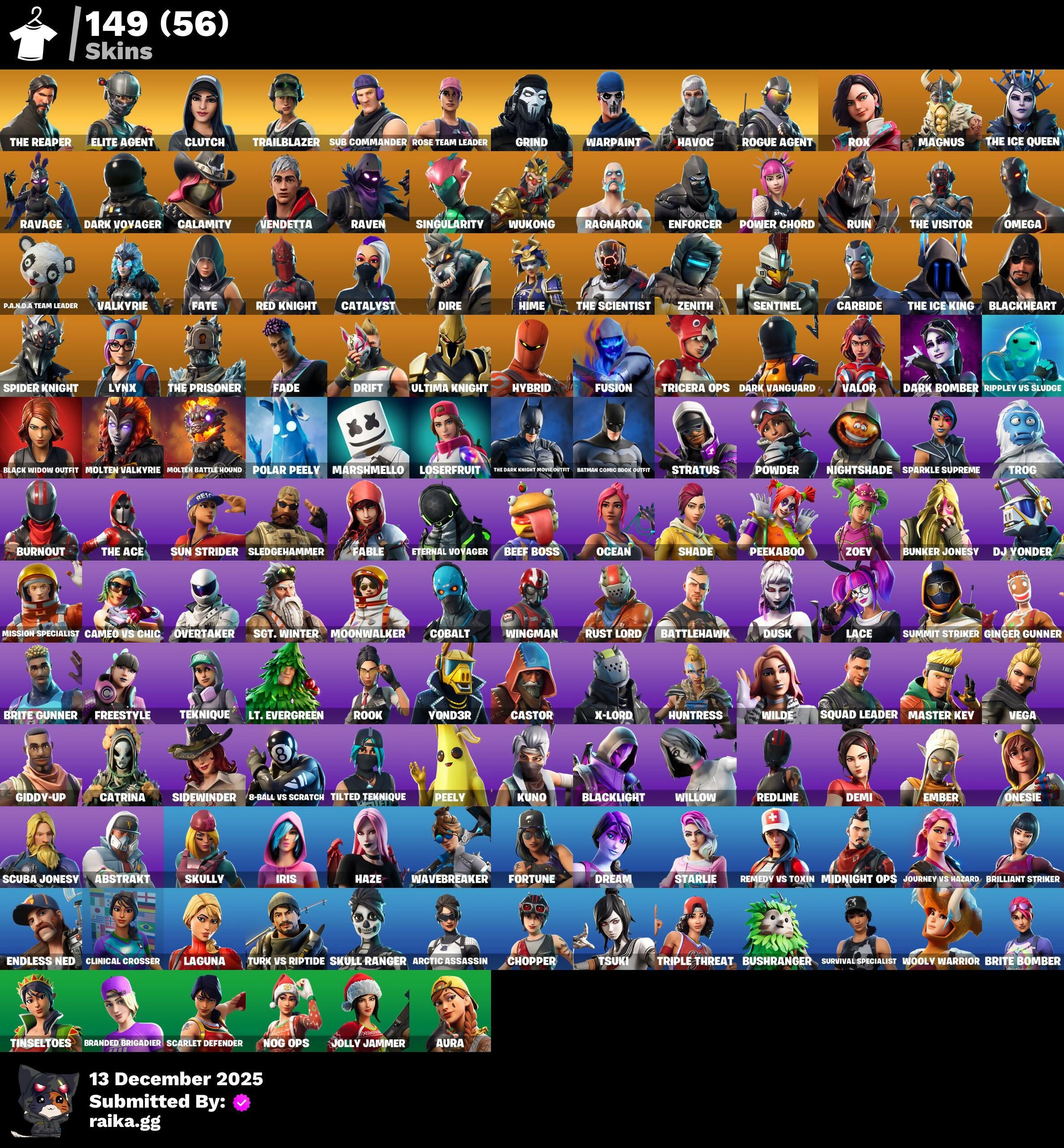 [PC/PSN/XBOX] 149 skins | OG STW | The Reaper | Elite Agent | Clutch | Trailblazer | Sub Commander | Grind | Havoc | Rogue Agent | Rox | Magnus | The Ice Queen | 1750 VB