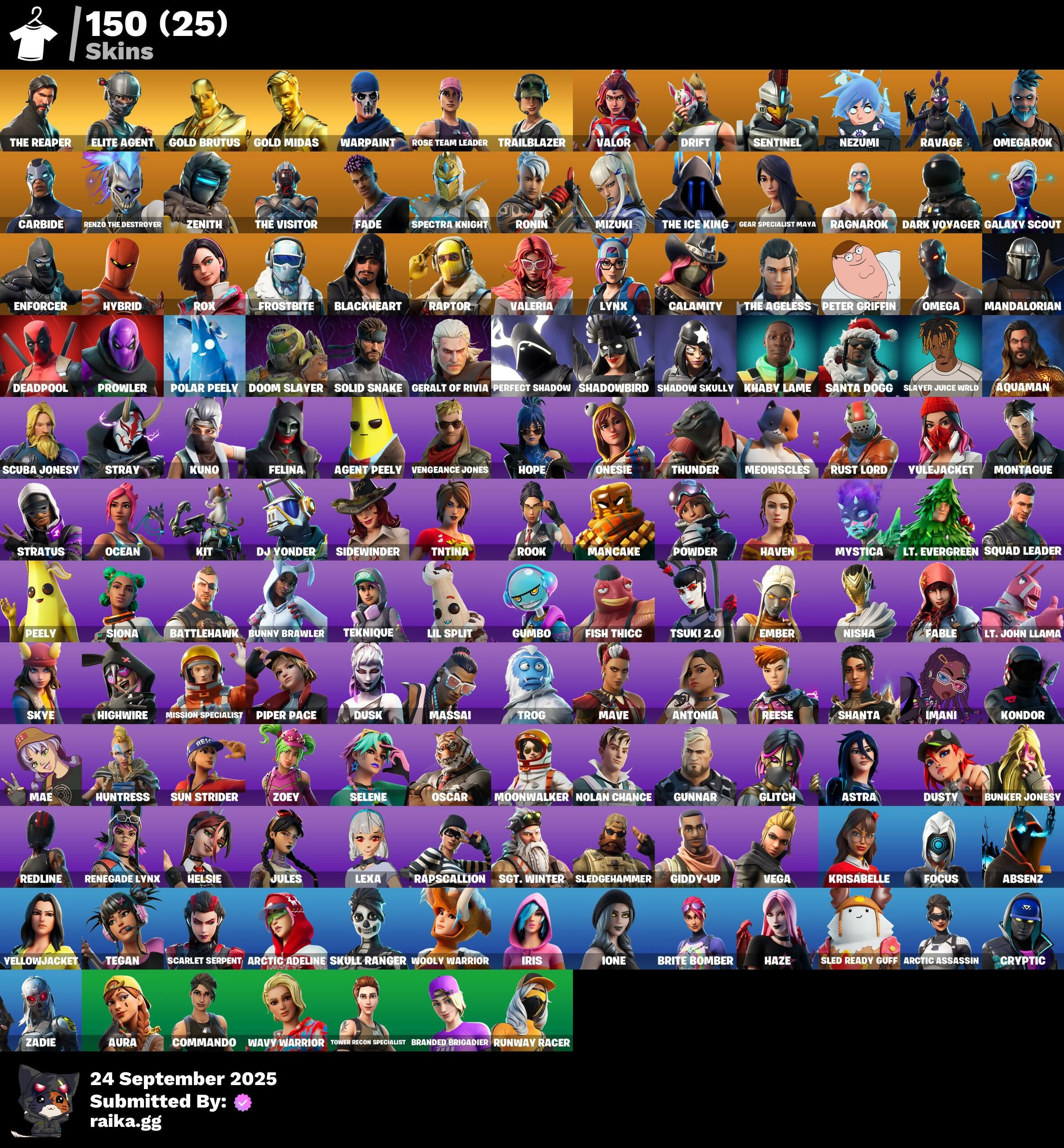 [PC/PSN/XBOX] 150 skins | OG STW | The Reaper | Elite Agent | Gold Brutus | Gold Midas | Trailblazer | Valor | Drift | Sentinel | Nezumi | Ravage | Omegarok | 460 VB / FN