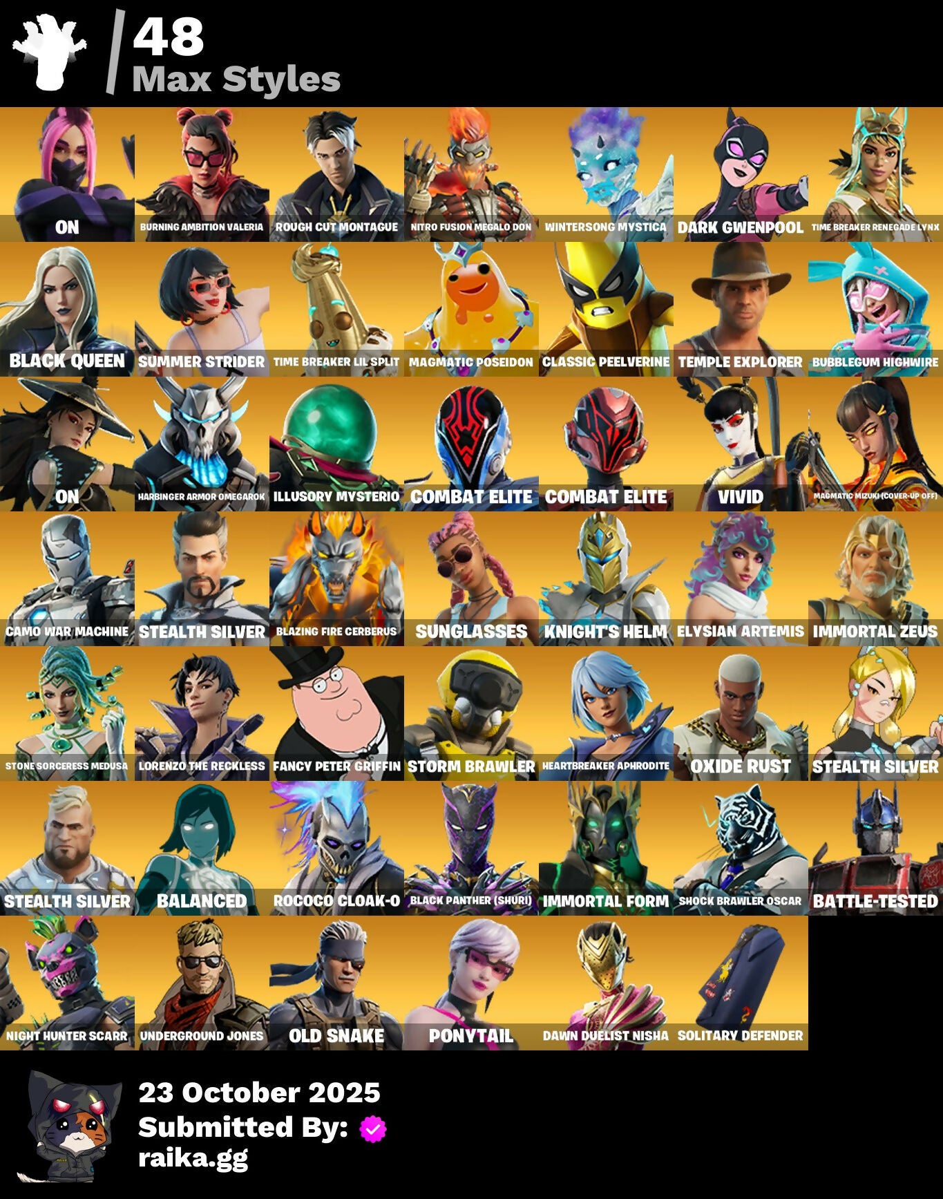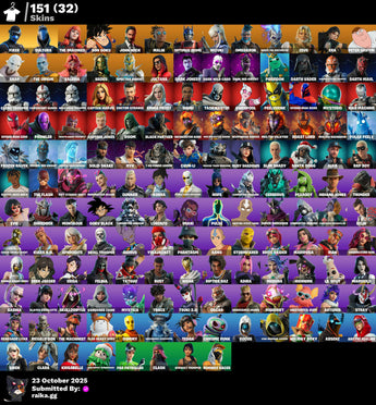 [PC/PSN/XBOX] 151 skins | Fixer | Chun Li | Sultura | The Imagined | Son Goku | John Wick | Malik | Optimus Prime | Mizuki | Omegarok | Renzo the Destroyer | 200 VB / FN
