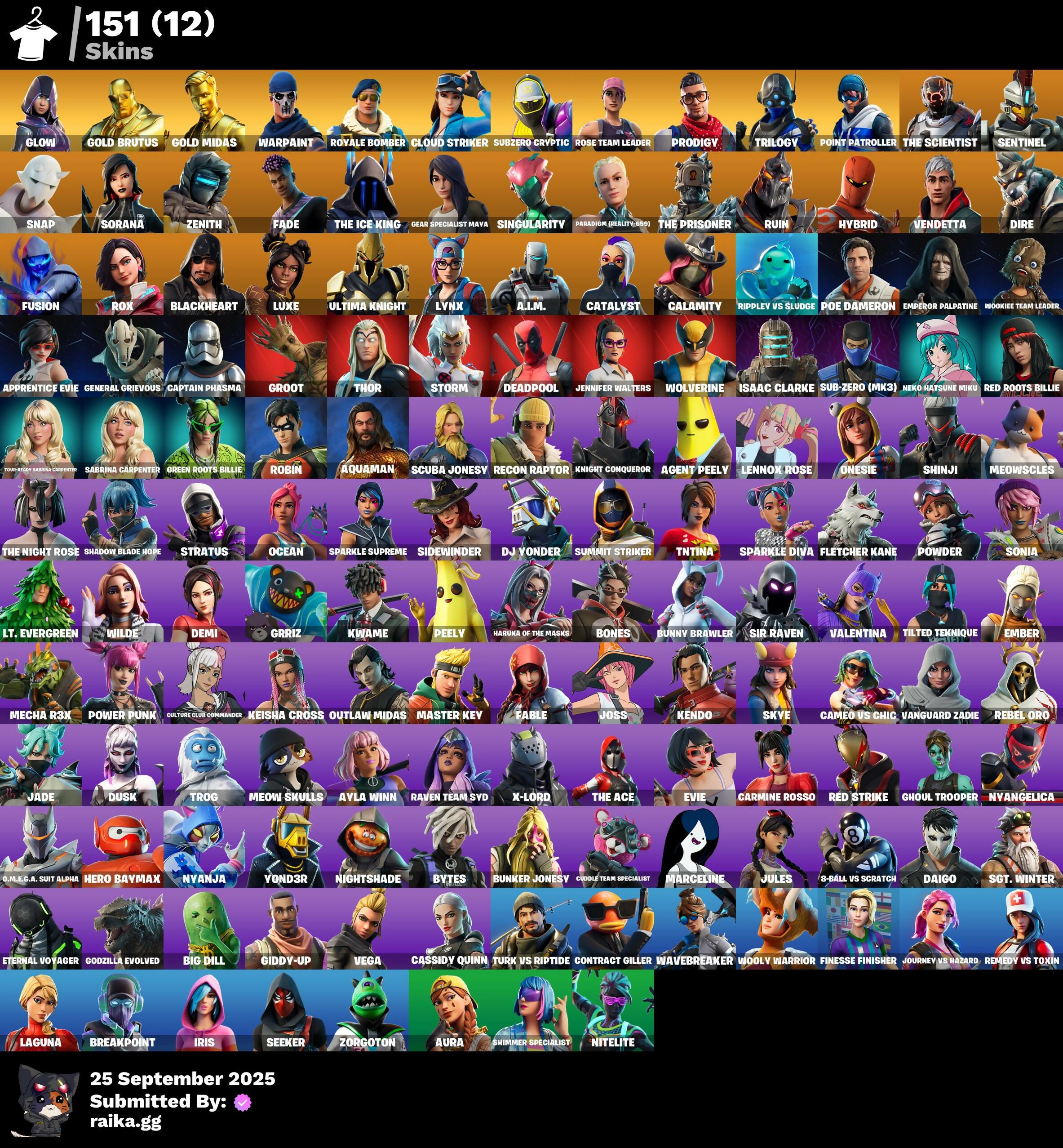 [PC/PSN/XBOX] 151 skins | OG STW | Glow | Gold Brutus | Gold Midas | Royale Bomber | Cloud Striker | Subzero Cryptic | Prodigy | Trilogy | Point Patroller | 360 VB
