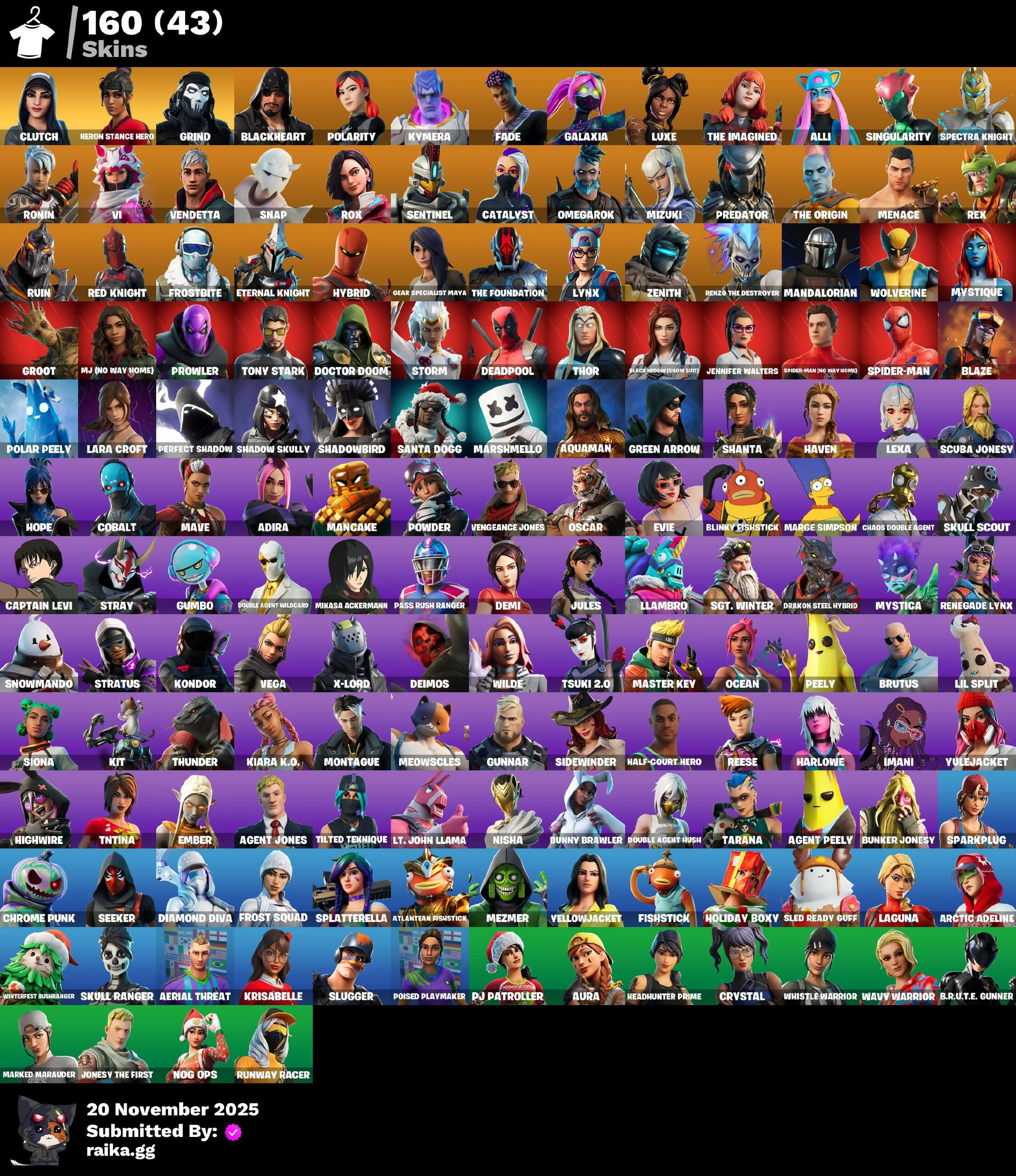 [PC/PSN/XBOX] 160 skins | Leviathan Axe | Candy Axe | Clutch | Heron Stance Hero | Grind | Blackheart | Polarity | Kymera | Fade | Galaxia | Luxe | The Imagined | Alli | 1650 VB / FN