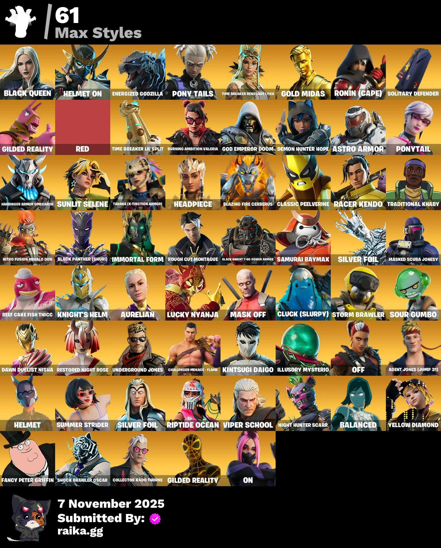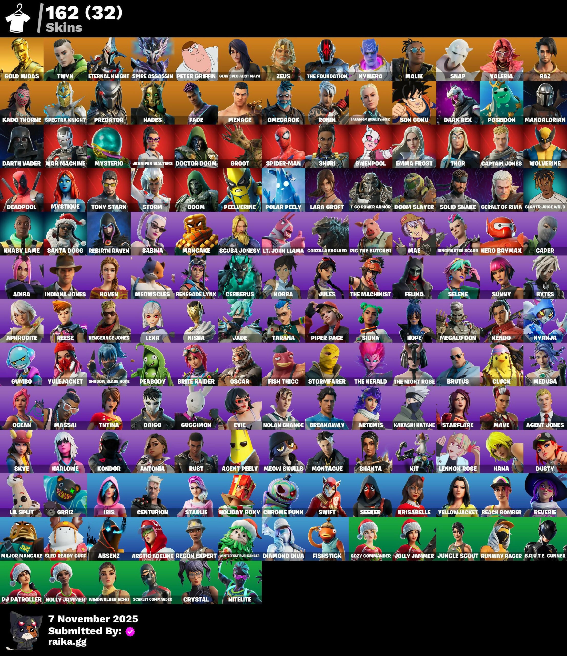 [PC/PSN/XBOX] 162 skins | Gold Midas | Twyn | Eternal Knight | Spire Assassin | Peter Griffin | Gear Specialist Maya | Zeus | The Foundation | Kymera | Malik | 100 VB / FN