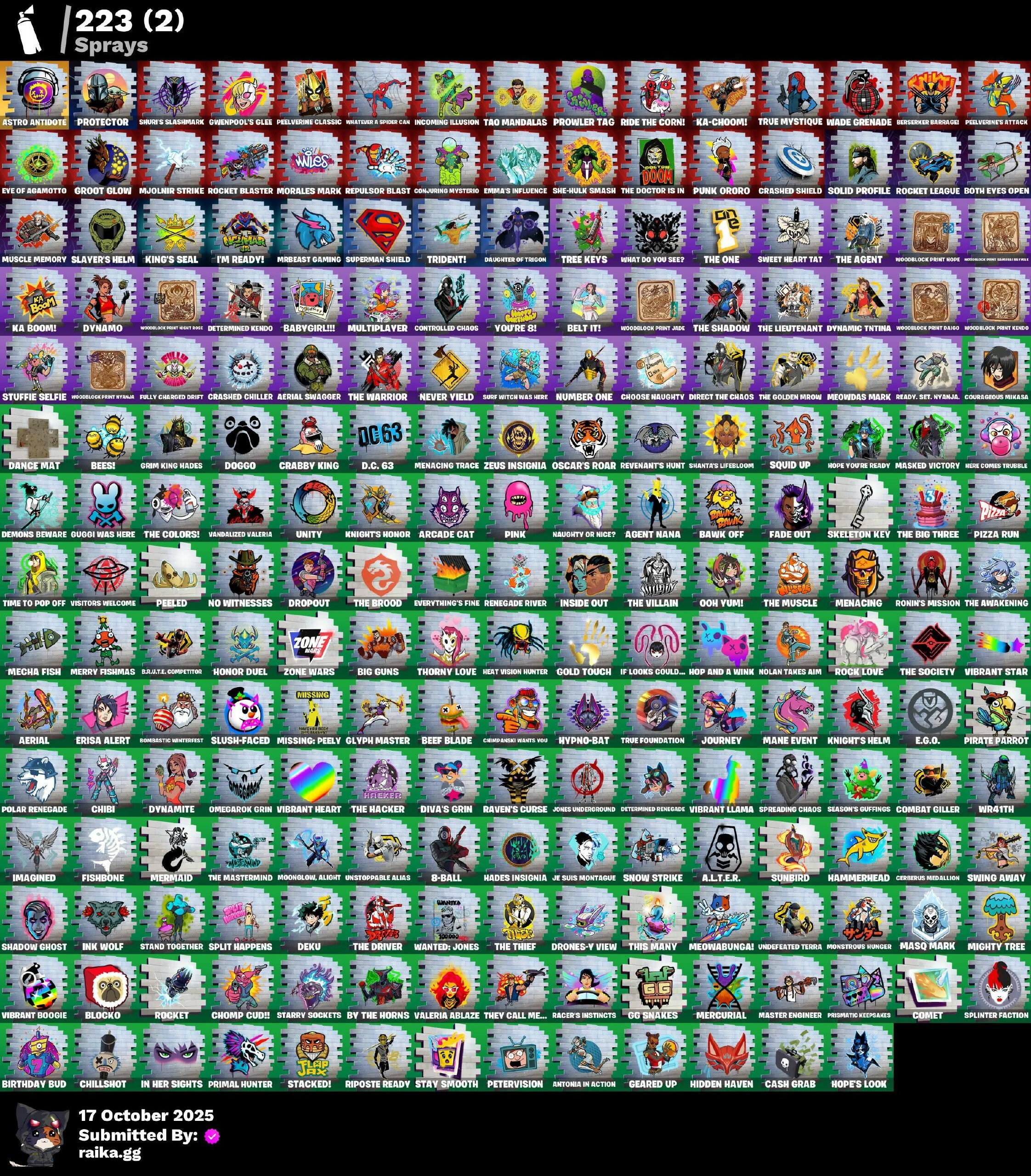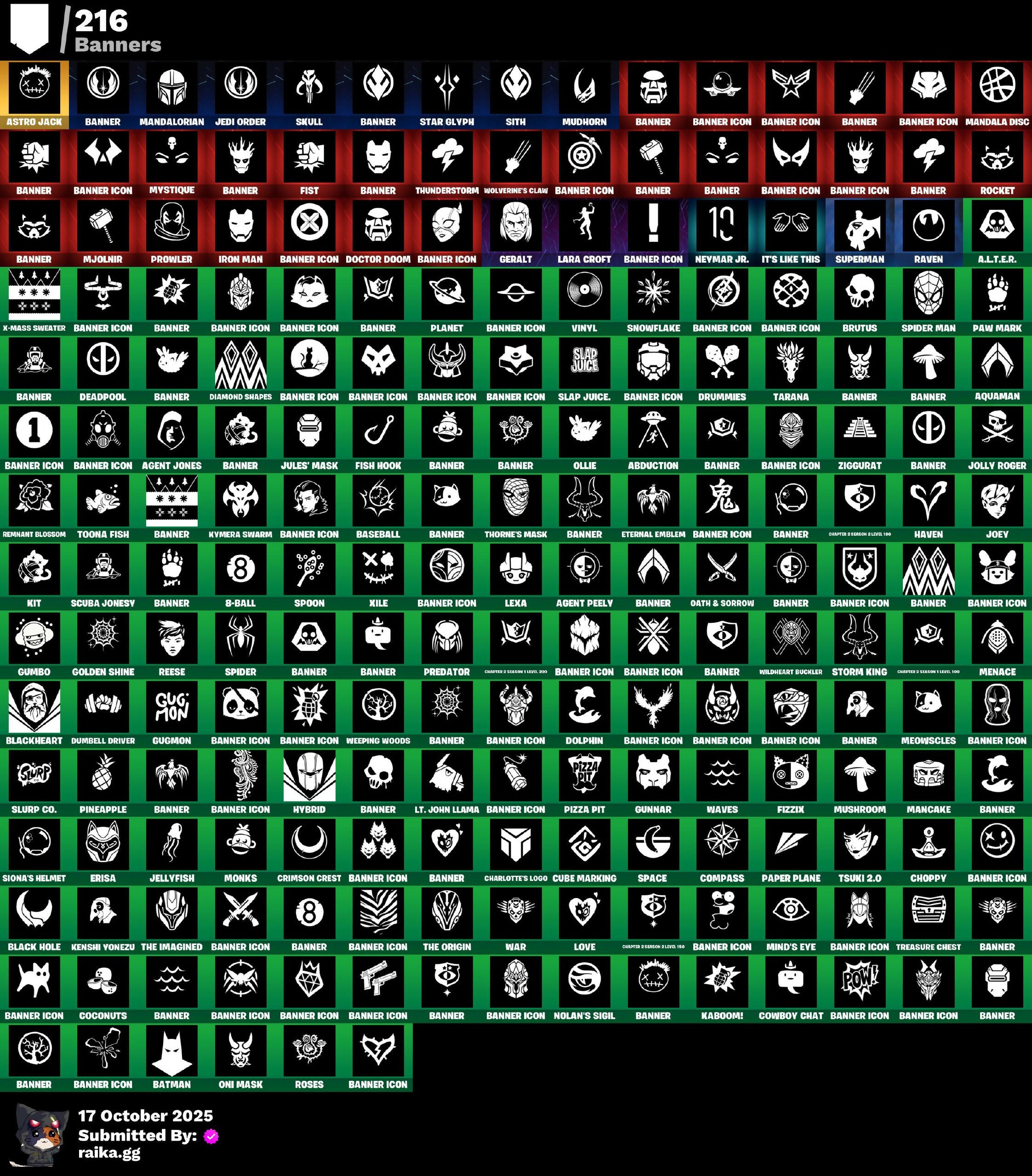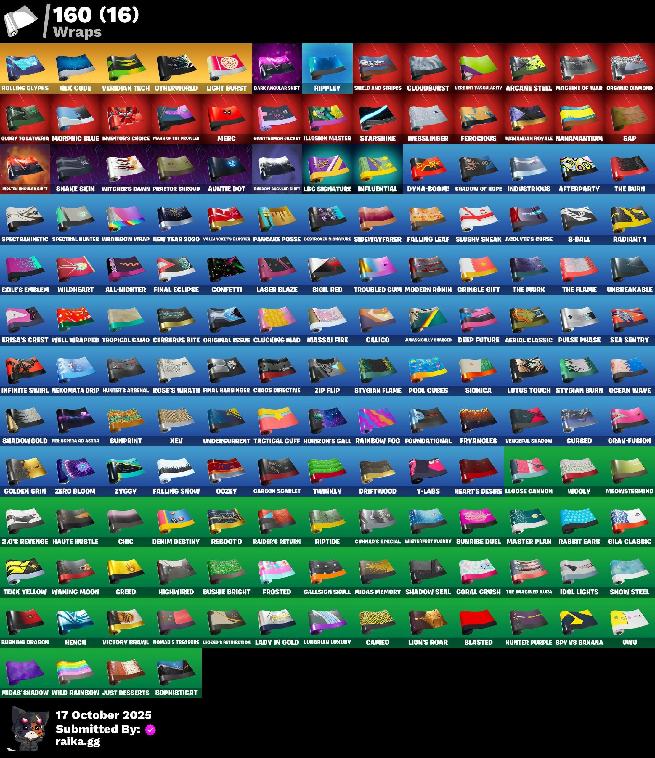 'I'm Ready!', (Snikt!), 1-Ball, 2.0's Revenge, 2020, 2020 Kickflip, 6-Carat Cutter, 8-Ball, 8-Ball Vs Scratch, 999 Knives, A Warrior Prepares, A.L.T.E.R., Abduction, Acolyte's Curse, Adventure Pack, Aerial, Aerial Classic, Aerial Swagger, Afterparty, Agent Jones, Agent Jones (Jump 31), Agent Nana, Agent Peely, Ahsoka Tano, Ahsoka's Staff, Air Shredder, All-Nighter, Ancestral Bloom, Angler Axes, Anniversary Axe, Antidote, Antonia, Antonia In Action, Apocalypse Shroud, Aquaman, Aquaman’s Trident, Arcade Cat, Arcane Energy Glider, Arcane Steel, Arctic Adeline, Arroyo Pack, Arthur Curry, Astro Antidote, Astro Armor, Astro Jack, Astroworld Cyclone, Auntie Dot, Aura, Auto Clutch, Axe-Tral Form, Azarath Metrion Zinthos!, Babygirl!!!, Back Board, Backup Blades, Balance Board, Ball Bling, Bamboo-Tana, Banana Bomber, Banana Briefcase, Bananaxe, Bank Shots, Banner, Banner Icon, Base Jumper, Baseball, Basecamp Bag, Bat Royale, Batman, Battle Bloom, Bawk Off, Baymax Wings, Beachcomber, Bean Bag, Beastfang, Beef Blade, Beep Beep, Bees!, Behold!, Belt It!, Berserker Barrage, Beskar, Beskar Umbrella, Big Bite, Big Guns, Big Haul, Bike To Go, Birthday Bud, Black Hole, Black Panther (Shuri), Black Queen, Blackheart, Blade Bag, Blade Raven, Blade of the Waning Moon, Bladed Travpak, Blades of Light, Blasted, Blocko, Blustery Bag, Board Breaker, Boba Bling, Boba Snack, Bobo, Boing!, Bomb Bouquet, Bombastic Winterfest, Bombs Away!, Bone Patrol, Boobytrapped, Boogie Down, Book Of Cagliostro, Boomin', Boots'n Cats, Both Eyes Open, Boulder Breakers, Bounty 'Brella, Breakfast Bounty, Breakin', Breathless Blades, Brella, Brilliant Cutters, Bring It Around, Bronzed Scimitars, Brute Competitor, Brutus, Bubbloon, Bullet Rider, Bulletproof, Bunker Basher, Burning Ambition Valeria, Burning Dragon, Bushie Bright, Buzz Pack, By The Horns, CG Snakes, Cacodemon, Cake Clobberer, Calico, Call Me, Callsign Skull, Cameo, Cameo Vs Chic, Camo War Machine, Cap Kick, Captain America, Captain Jones, Captain Jones (Pen & Ink), Captain Jones's Shield & Pickaxe, Captain Llamerica, Captain's Glider, Carbon Fiber Holster, Carbon Scarlet, Card Drop, Cardistry, Cash Grab, Cauldron Chill, Cerberus Bite, Cerberus Medallion, Chain Surfer, Chainsaur, Chainstick Pack, Chalked Up 1-Ball, Challenger Menace - Flame, Chaos Directive, Chaos Director, Chaotic Crawler, Charlotte, Charlotte's Logo, Chef's Special, Chibi, Chic, Chicken Wing It, Chillshot, Chimichanga!, Chimpianski Wants You, Choice Knit, Chomp Cudi!, Choose Naughty, Chop Chop, Chop Dropper, Choppy, Cinder, Clark Kent, Classic Peelverine, Classic Wolverine, Classified, Clawbox, Clawz Retro, Clean Sweep, Cliffside Soarer, Clip Show Carry-All, Cloudburst, Cluck, Cluck (Slurpy), Clucking Mad, Clutch & Dagger, Cobra, Coconuts, Coin Flip, Combat Cue, Combat Elite, Combat Giller, Comet, Comet Crasher, Compass, Competitor's Time Brella, Confetti, Conga, Conjure Weapon, Conjuring Mysterio, Controlled Chaos, Controller Crew, Convergence, Cookie Cutter, Coral Crush, Corrupted, Courageous Mikasa, Cowboy Chat, Crabby King, Crack It, Crashed Chiller, Crashed Shield, Crazy Eight, Crescent Shroom, Crimson Codelade, Crimson Crest, Crimson Polestar, Crimson Wish, Crowning Achievement, Crucible Blade, Crystal Axe of the Masters, Cube Aether, Cube Marking, Cubic Scepter, Cuddly Cloudcruiser, Curling Iron, Cursed, Cursed Marionette, Cyclo Curl, D.C. 63, Dagger Dance, Daigo, Daigo's Claws, Dance Mat, Dance Monkey, Dark Angular Shift, Dark Bag, Dark Bomber, Dark Gwenpool, Dark Power Chord, Dark Six String, Dark Strikers, Daughter Of Trigon, De-Rezz De-Stroyer, Deadpool, Deadpool's Katanas, Deep Dab, Deep Dive, Deep Future, Deku, Delivery Diver, Demons Beware, Demonslayer Blade, Denim Destiny, Designated Hitters, Destroyer Signature, Determined Kendo, Determined Renegade, Diamond Diva, Diamond Shapes, Diamond Throne, Diamondclaw Picker, Dice Roll, Dimensional Gate, Dino Deck, Direct The Chaos, Diva's Grin, Dive Knives, Do The Split, Doctor Doom, Doctor Strange, Dogg Treat, Doggo, Dolphin, Doom, Doom Brella, Doom Chalice, Doom Slayer, Doom's Cloak, Doom's Cowl, Doom's Domain, Double Header, Double-Barreled Boom Ballasts, Downpour, Doze Dab, Dragon Stance, Dragon's Claw, Driftwood, Drones-Y View, Droop, Droopy, Dropout, Drummies, Dry Bag, Duelist's Foil, Dumbbell Driver, Dumbell Driver, Dusty, Dyna-Boom!, Dynamic Tntina, Dynamite, Dynamo, Dynamo Grav-Suit, Dynamo Tntina, Dynamo Tntoon-A, E.G.O., Eagle, Eagle's Form, Eclipse Brella, Eclipsed Edges, Eggar, Electro Swing, Elegance Blade, Elite Servo, Ember Pick, Emma Frost, Emma's Influence, Enchanted Lifebloom, Endless Scroll, Energy Claw, Eon Blades, Epic Blade of Floof, Epic Swords of Wonder, Erisa, Erisa Alert, Erisa's Crest, Eternal Emblem, Eternal Knight, Eternal Ranker, Eternal Shield, Evasive Maneuvers, Everything's Fine, Evie, Exile's Emblem, Expressionism, Eye Of Agamotto, FNCS Fighter, Fa-La-La-Llama, Fabio Sparklemane, Fade, Fade Out, Falling Leaf, Falling Snow, Fancy Peter Griffin, Fanged Foresight, Fashion Accident Janky, Felina, Felina's Claw, Feline Dagger, Feline Fun, Ferocious, Field Flyer, Fiendish Wand, Final Eclipse, Final Harbinger, Fireworks Salvo, First Order, Fish Hook, Fish Thicc, Fishbone, Fishstick Janky, Fishy Flier, Fist, Fist Bump, Fist Of Doom, Fizzix, Flaky Feast, Flapjack Flyer, Flappy Flyer, Flashback Breakdown, Flavor-Dusted Sparklewings, Flight Risk, Flip Flyer, Flippin' Away, Flippin' Sexy, Flux Silvera, Foil Flex, Fortilla Flier, Foundation's Mantle, Foundational, Foundational 'Brella, Foundations Plasma Spike, Fox Drifter, Frost Squad, Frostburn, Frosted, Frosted Frets, Frosty Globes, Fryangles, Fully Charged Drift, Fusion, Fusion Coil, Fusion Orb, Fusion Scythe, Galactic Pack, Gangnam Style, Gas Up Pack, Gathering Storm, Gear Specialist Maya, Geared Up, Geralt, Geralt Of Rivia, Giddy Gunner, Gila Classic, Gilded Morphic Blades, Gilded Scepter, Ginger Gunner, Gingersled, Glorious Giftblade, Glory To Latveria, Glyph Master,