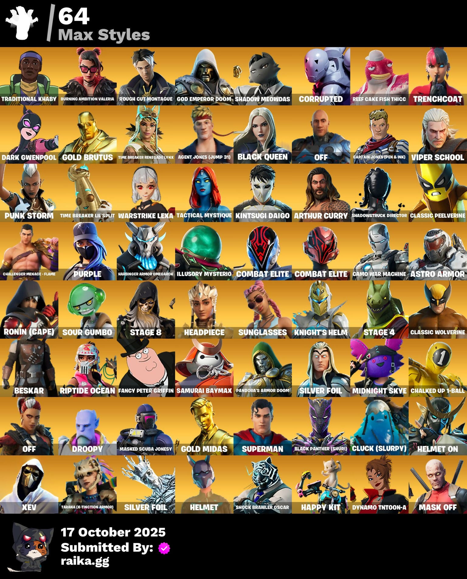 [PC/PSN/XBOX] 162 skins | Lara Croft | Gold Brutus | Gold Midas | Lina Scorch | The Cube Queen | The Imagined | The Foundation | Kymera | Joey | 2000 VB / FN