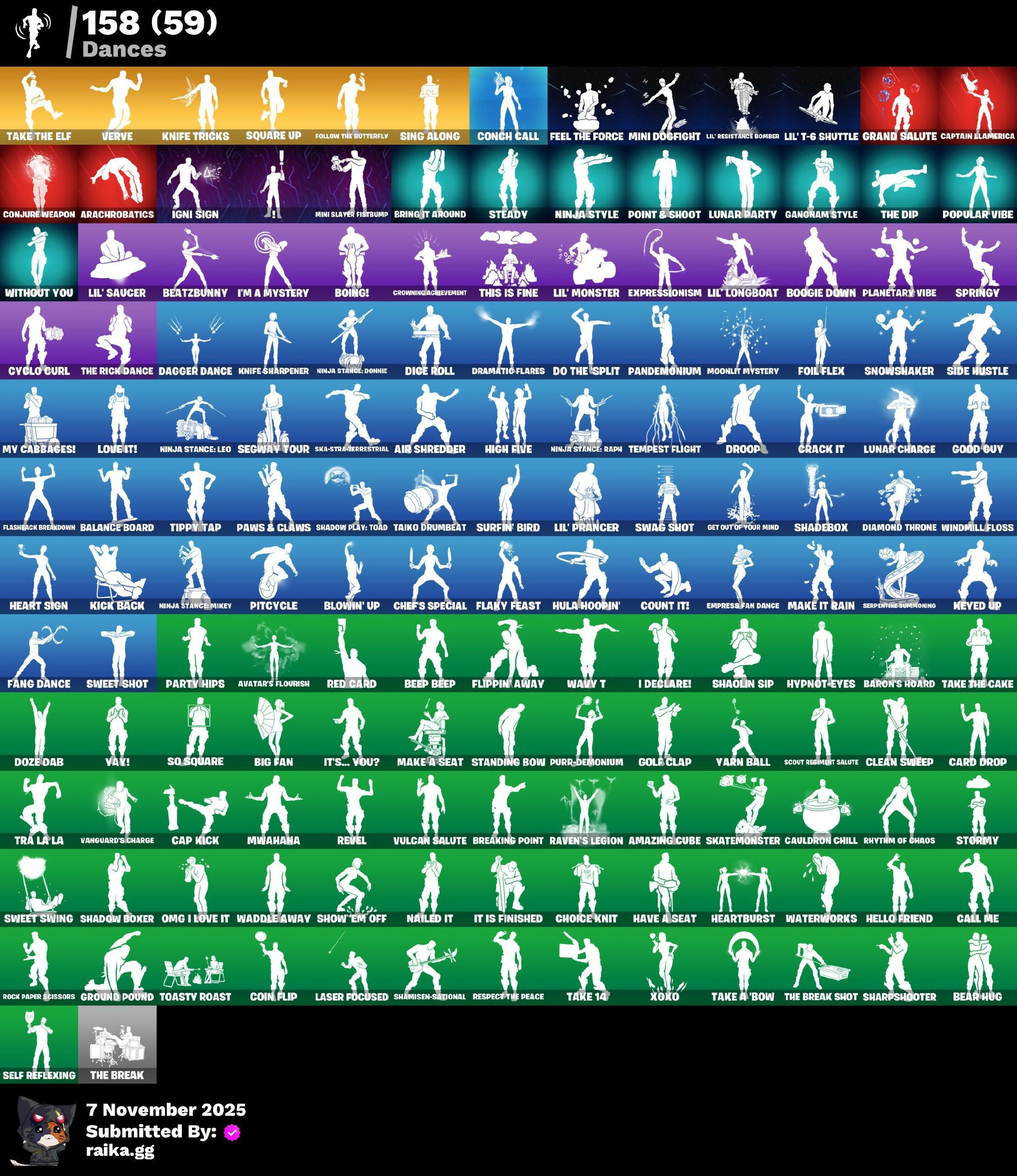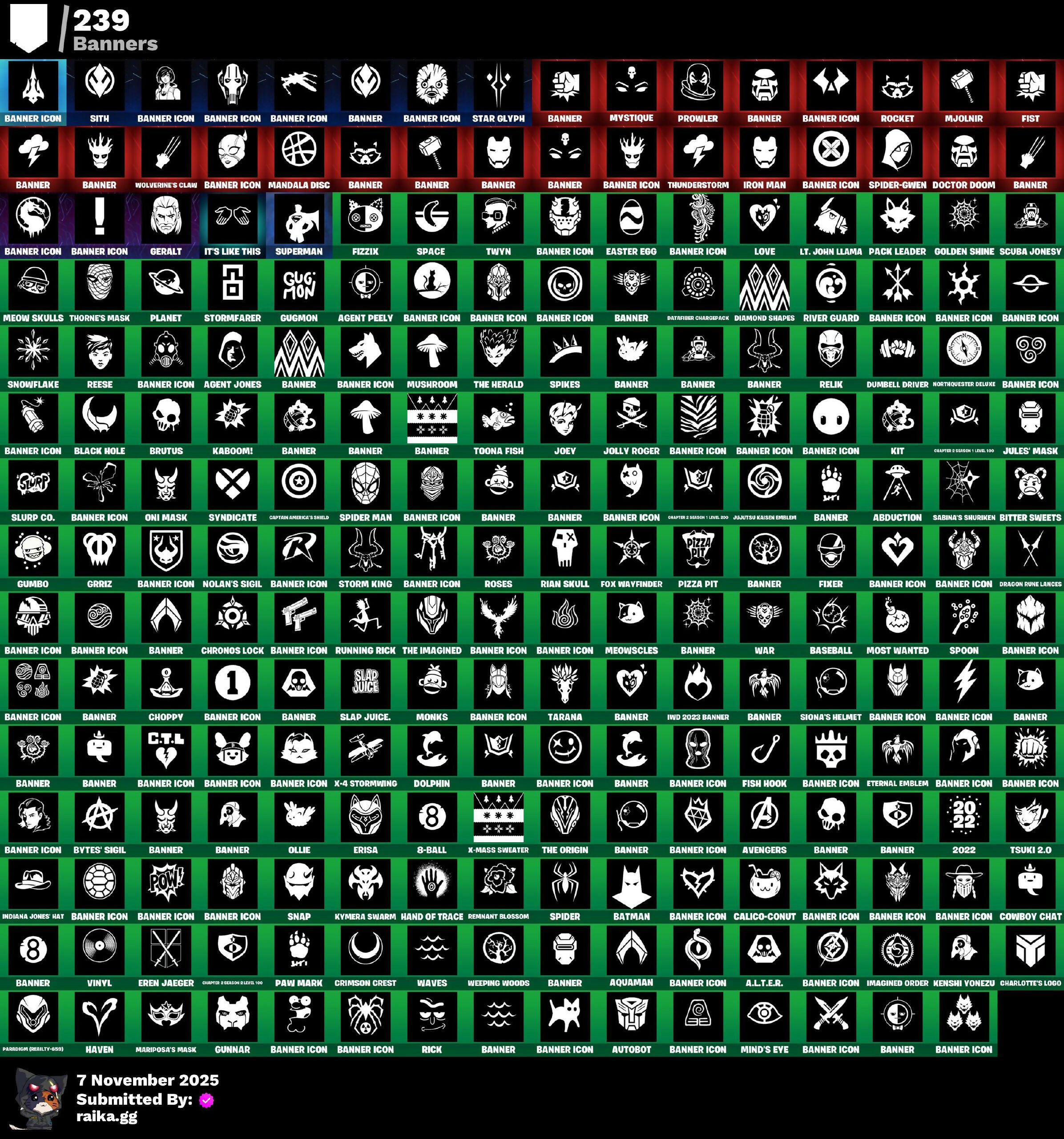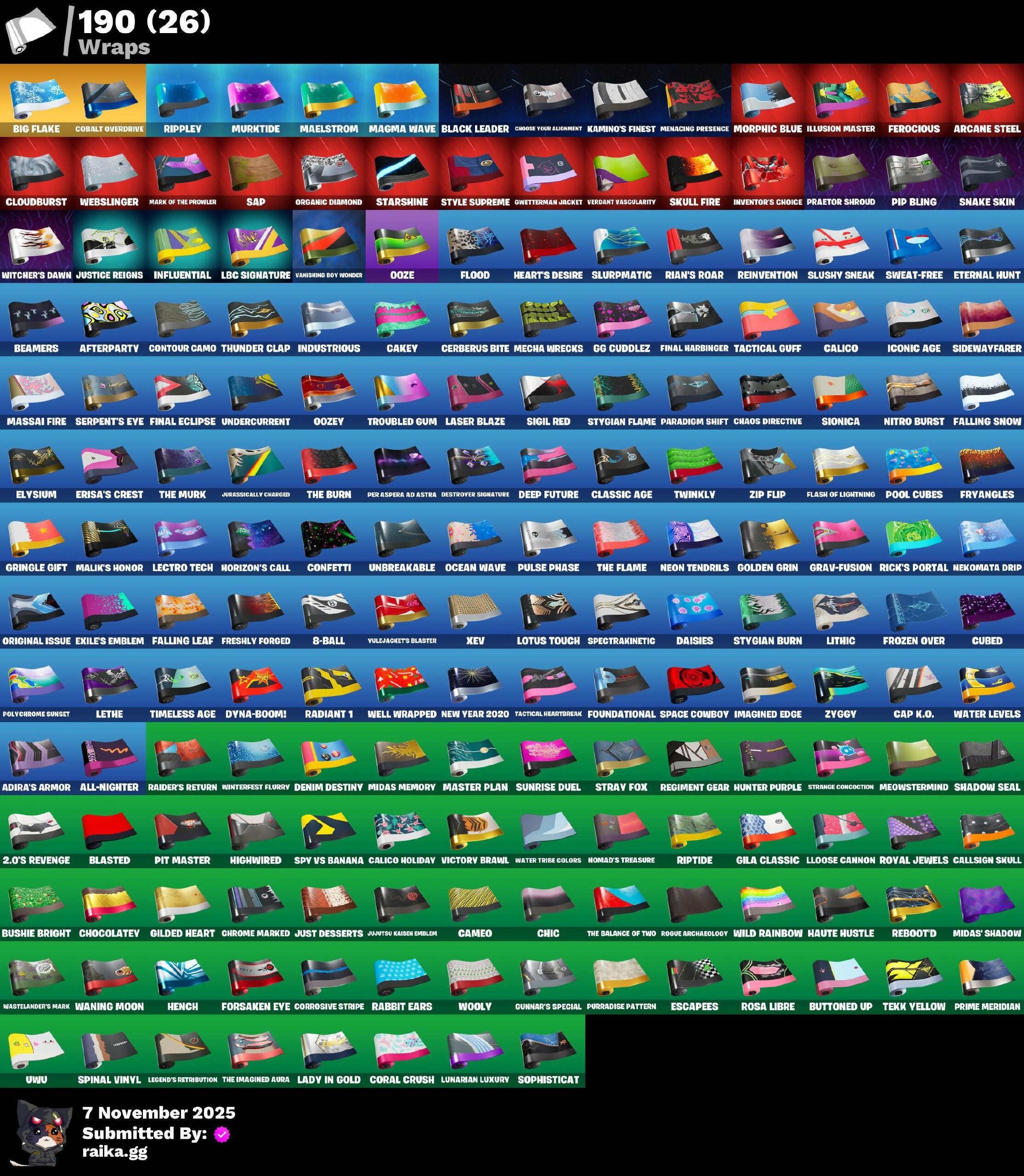 1-Ball, 2.0's Revenge, 2020 Kickflip, 2022, 8-Ball, 8-Ball Janky, 8-Ball vs Scratch, 999 Knives, A.L.T.E.R., AWR Pack, Abduction, Ace Pilot Poe, Adira, Adira's Armor, Adira's Battle Flag, Adventure Aerial, Adventure Pack, Aerial, Afterparty, Agent Jones, Agent Nana, Agent Peely, Ahsoka Tano, Ahsoka's Staff, Air Shredder, All-Nighter, Alpha Trophy, Amazing Cube, Ancestral Bloom, Angler Axes, Antidote, Antonia, Antonia In Action, Apex Predator, Aphrodite, Apocalypse Shroud, Apprentice Evie, Aquaman, Arachrobatics, Arcade Cat, Arcane Energy Glider, Arcane Steel, Arctic Achiever, Arctic Adeline, Arrowpoint Carver, Arroyo Pack, Artemis, Articulated Blade Wing, Astro Armor, Aura, Aurelian, Auto Clutch, Autobot, Autobot Emblem, Avatar Cycle, Avatar's Flourish, Avengers, Avengers Logo, B Splat, B.R.U.T.E. Competitor, Babygirl!!!, Back Board, Back-Rooted Bombs Away, Backup Blades, Balance Board, Balanced, Ball Bling, Banana Bomber, Banana Briefcase, Bananaxe, Bank Shots, Baron Kane, Baron's Hoard, Base Jumper, Baseball, Basecamp Bag, Basement Key, Bat Royale, Batman, Battle Bloom, Battle Mode, Battle Ready Era, Battle Ready Poe, Battle-Tested, Beach Breezer, Beachblasted Swami's Takk, Beachcomber, Beacon Glass, Beamers, Bear Hug, Beatzbunny, Bedside Manner, Beep Beep, Bees!, Berserker Barrage, Big Bite, Big Fan, Big Flake, Big Guns, Big Haul, Birthday Basher, Birthday Bud, Birthday Dash, Bitey, Bitter Sweets, Black Hole, Black Leader, Black One X-Wing, Blackened Shield, Blade Bag, Blade Raven, Blade of the Waning Moon, Bladed Travpak, Blasted, Blaze, Blazing Fire Cerberus, Blizzard Bomber, Blocko, Bloomback Sack, Blowin' Up, Blue Viper, Board Breaker, Boba Bling, Bobo, Boing!, Bolt Blades, Bomb Bouquet, Bombastic Winterfest, Bombs Away!, Boogie Down, Book Of Cagliostro, Boot It, Both Eyes Open, Boulder Breakers, Bounty Brella, Breaking Point, Breaking Waves, Breakshore Trident, Breathless Blades, Brella, Brilliant Cutters, Bring It Around, Brite & Speedy, Bronzed Scimitars, Brutus, Bubbloon, Buffer Fish, Bugha, Bugha Blades, Bullet Rider, Bun Bun Bang Bang, Bun Bun Blast, Bunsen Backburner, Burning Ambition Valeria, Burning Ember, Burning Ember Holster, Bushie Bright, Butter Robot, Buttoned Up, Buzz Pack, Buzzsaw Breacher, By The Horns, Bytes, Bytes' Sigil, Cacodemon, Cake Clobberer, Cake!, Cakey, Calico, Calico Holiday, Calico-Conut, Call Me, Callsign Skull, Cameo, Cameo vs Chic, Cap K.O., Cap Kick, Captain America's Shield, Captain America's Shield & Pickaxe, Captain Slamerica, Carbon Fiber Holster, Card Drop, Cash Grab, Cauldron Chill, Cazadora, Cazadora Wings, Cerberus, Cerberus Bite, Cerberus Medallion, Chain Surfer, Chalked Up 1-Ball, Challenger Cerberus, Challenger's Staff, Chaos Directive, Chaos Director, Chaotic Crawler, Charge Pack, Charlotte's Logo, Chef's Special, Chemist's Cloudglider, Chic, Chillshot, Chimpanski Wants You, Chocolatey, Choice Knit, Chomp Cud!!, Choose Naughty, Chop Chop, Chop Dropper, Choppy, Chrome Marked, Chrome Punk, Chromebrella, Chromeseed, Chromestruck Fire, Chronos Lock, Clang & Basher, Clark Kent, Classic Age, Classic Wolverine, Classified, Clawbox, Clawz Retro, Clean Sweep, Cliffside Soarer, Clip Show Carry-All, Cloud Striker, Cloudburst, Clutch & Dagger, Cobalt Overdrive, Coin Flip, Cold Furia, Collector Kado Thorne, Combat Cue, Combat Elite, Combat Giller, Comet, Comet Crasher, Cometbrella, Comfy Cats, Competitor Medusa, Competitor Rust, Competitor's Time Brella, Conch Call, Confetti, Conjure Weapon, Contour Camo, Controlled Chaos, Convergence, Coral Crush, Corrosive Stripe, Corrupted, Coruscant Guard, Count It!, Courageous Mikasa, Cowboy Chat, Cozy Conch, Crabby King, Crack It, Crashed Chiller, Crashed Shield, Crazy Eight, Crescent Shroom, Crimson Crest, Cross Your Heart, Crossbite Toothaxes, Crowning Achievement, Crucible Blade, Crystal Carriage, Cube Aether, Cubed, Cubic Scepter, Cuddle Carvers, Cuddles’ Garden, Cuddly Cloudcruiser, Cybertronian Axe, Cyclo Curl, Cyvitar, D.C. 63, Dagger Dance, Daisies, Dark Charger, Datafriser Chargepack, Datapad Charquack, Dawn Duelist Nisha, Deadpool, Deadpool's Katanas, Dealer's Deck, Deep Dive, Deep Future, Delivery Diver, Demons Beware, Denim Destiny, Designated Hitters, Destroyer Signature, Determined Korra, Determined Renegade, Diamond Shapes, Diamond Throne, Diamondclaw Picker, Dice Roll, Dieselback Pack, Dino Deck, Direct The Chaos, Diva’s Grin, Dive Knives, Do The Split, Doctor Doom, Doctor Slone, Doctor Strange, Doggo, Dolphin, Don Of The Wastes, Doom Brella, Doom Chalice, Doom Slayer, Doom's Cowl, Doomrunner's Trophy, Double Header, Downpour, Doze Dab, Dragon Rider, Dragon Rune Lance, Dragon Rune Lances, Dragon Spirit, Dramatic Flares, Dramyin, Dreamer's Two-Shot, Driver, Drome Drifter, Drones-y View, Droop, Dropout, Duelist's Foil, Dumbbell Driver, Dumbell Driver, Dune Scooper, Dusty, Dyna-Boom!, Dynamic Tntna, Dynamite, Dynamo, Dynamo TNTina, E.G.O., Easter Egg, Eclipse Brella, Eclipsed Edges, Electric Shredder, Electro Pairing Blades, Elegance Blade, Elegant Crowbar, Elemental Cycle, Elevation, Elite Servo, Elysium, Ember Baton, Ember Pick, Emergency Raft, Emma’s Influence, Empress Fan Dance, Enchanted Lifebloom, Energy Claw, Eon Blades, Epic Blade of Floof, Epic Swords of Wonder, Epitaph Edge, Equalizer, Era, Eren Jaeger, Eren’s Faceoff, Erisa, Erisa Alert, Erisa's Crest, Escapees, Eternal Emblem, Eternal Hunt, Eternal Knight, Eternal Ranker, Eternal Shield, Everything’s Fine, Evie, Exile's Emblem, Expedition Bag, Expressionism, Eye Of Agamotto, Fa-La-La-Llama, Fade, Fade Out, Fading Ember Cloak, Falling Leaf, Falling Snow, Fan Attack, Fancy Peter Griffin, Fang Dance, Fanged Foresight, Fashion Accident Janky, Feel The Force, Felina, Felina's Claw, Feline Dagger, Feline Fun, Ferocious, Fiendish Wand, Fiery Descent, Final Eclipse, Final Harbinger, Firestarter, Fish Hook, Fish Thicc, Fishbone, Fishbone Flayer, Fishstick Janky, Fishy Flier, Fist, Fixer, Fizzik, Fizzix, Flaky Feast, Flapjack Flyer, 