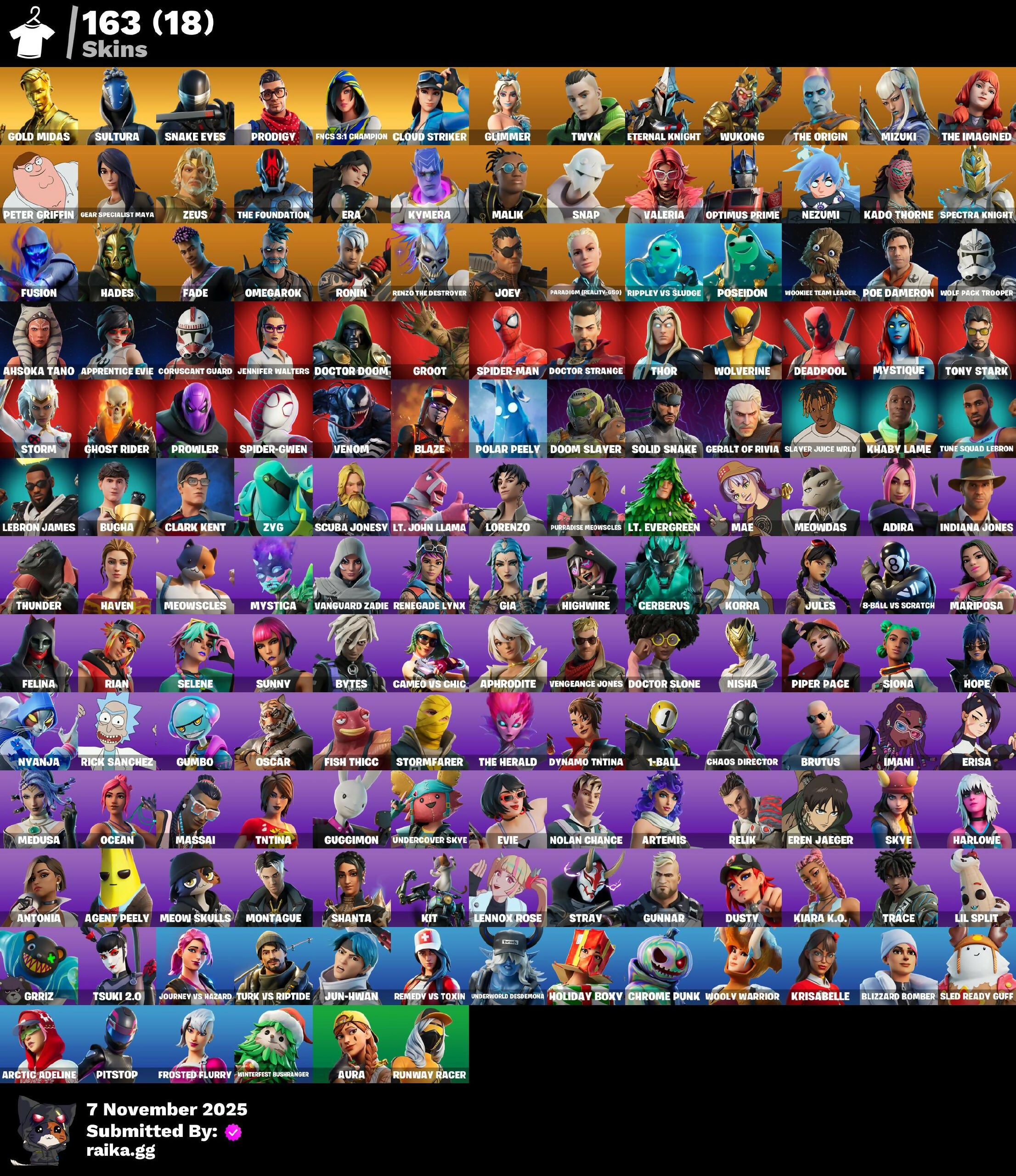 [PC/PSN/XBOX] 163 skins | Gold Midas | Sultura | Snake Eyes | Prodigy | FNCS 3:1 Champion | Cloud Striker | Glimmer | Twyn | Eternal Knight | Wukong | 700 VB / FN