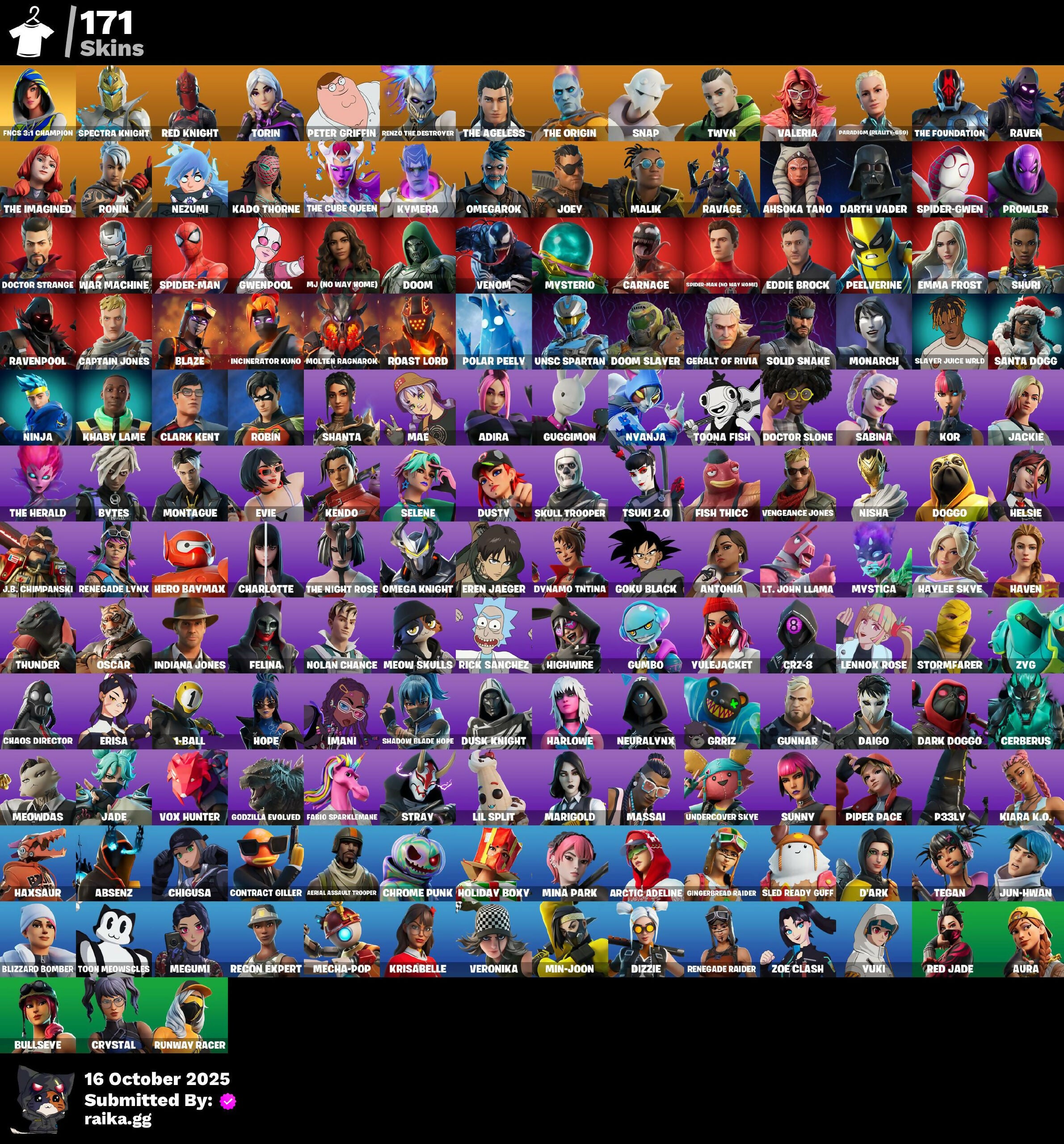[PC/PSN/XBOX] 171 skins | Renegade Raider | Aerial Assault Trooper | FNCS 3:1 Champion | Spectra Knight | Red Knight | Torin | Peter Griffin | 250 VB / FN
