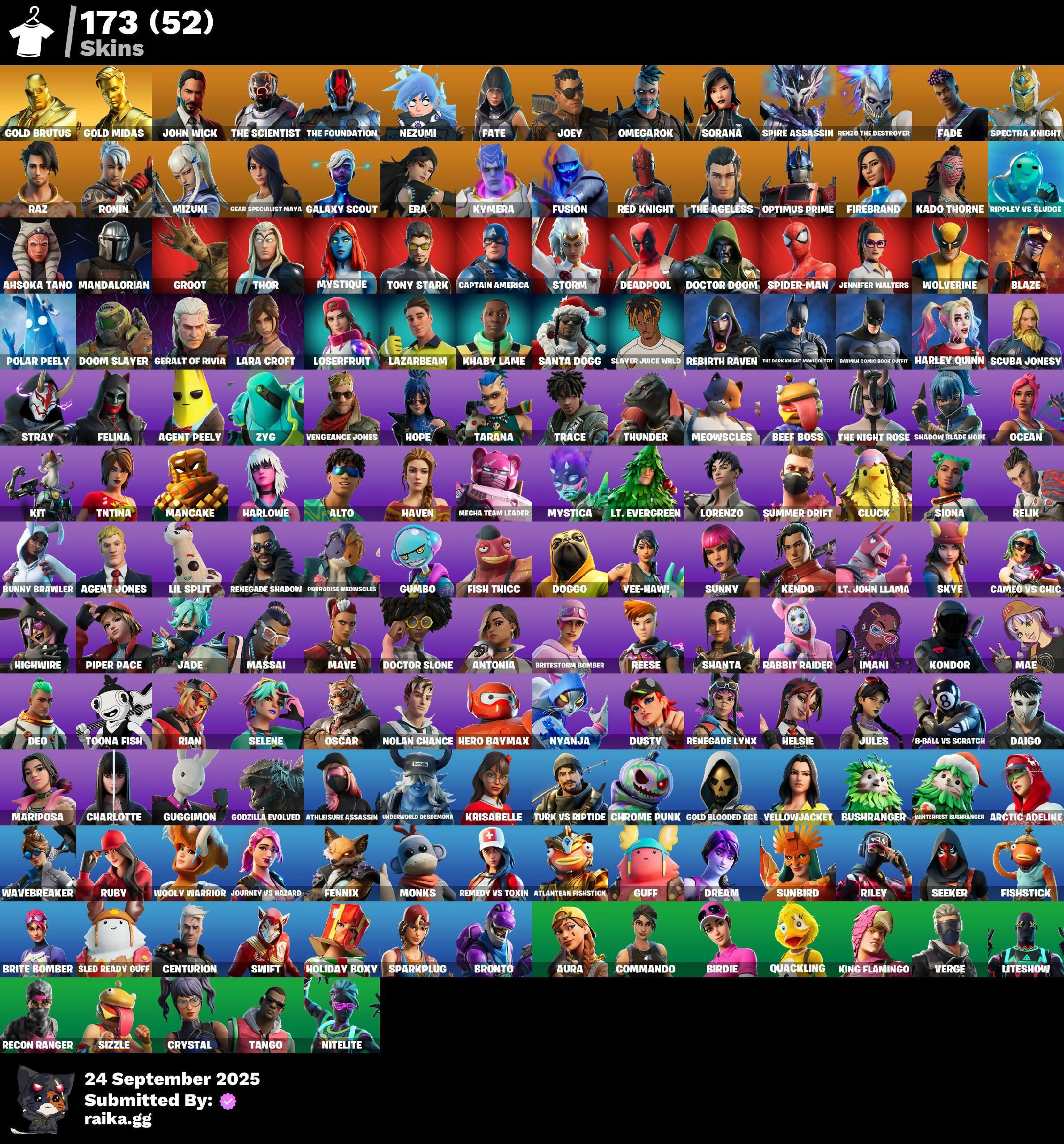 [PC/PSN/XBOX] 173 skins | Gold Brutus | Gold Midas | John Wick | The Scientist | The Foundation | Nezumi | Fate | Joey | Omegarok | Sorana | Spire Assassin | 700 VB / FN