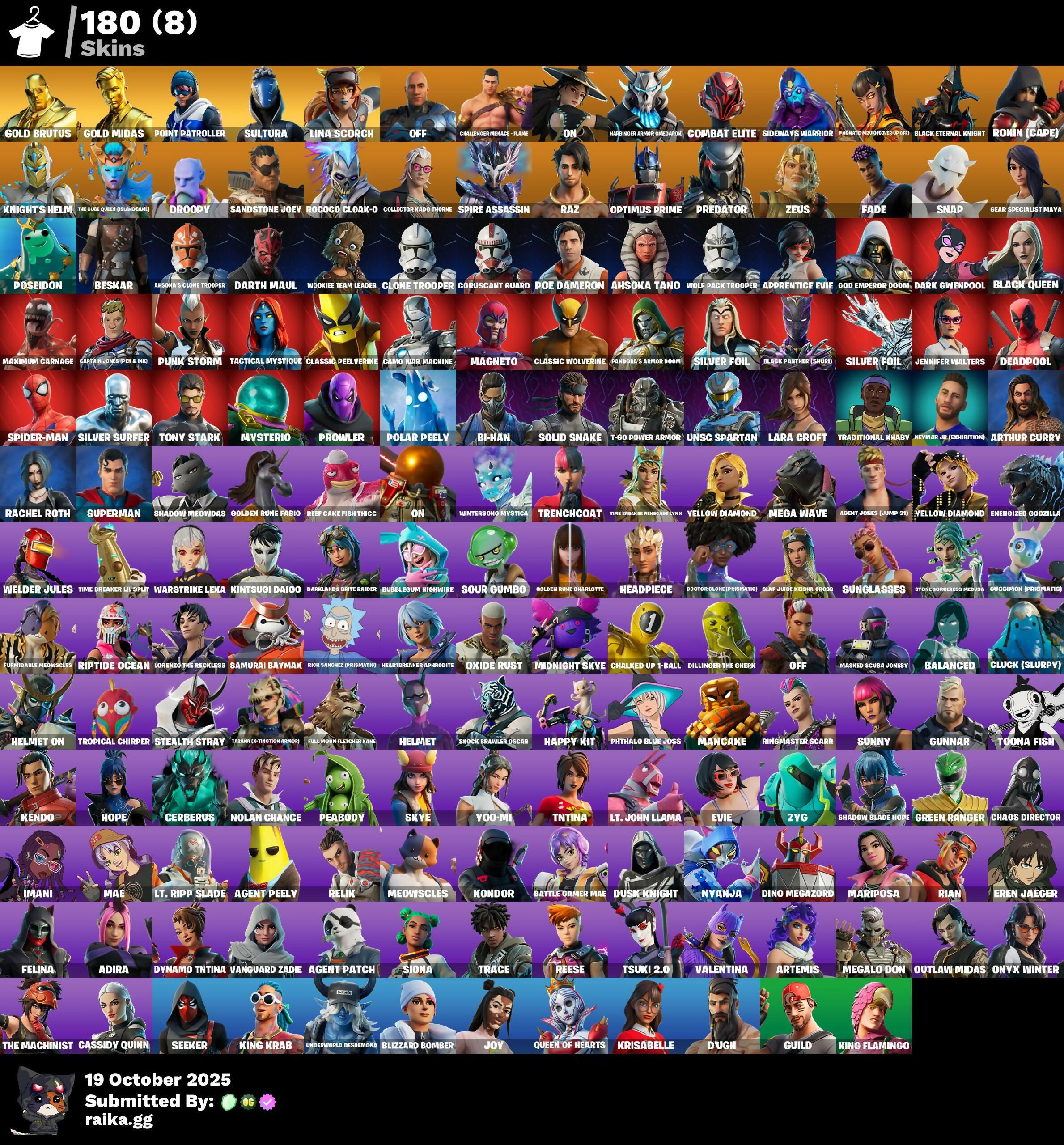 [PC/PSN/XBOX] 180 skins | Gold Brutus | Gold Midas | Point Patroller | Sultura | Lina Scorch | off | Challenger Menace - Flame | On | 1300 VB #a68