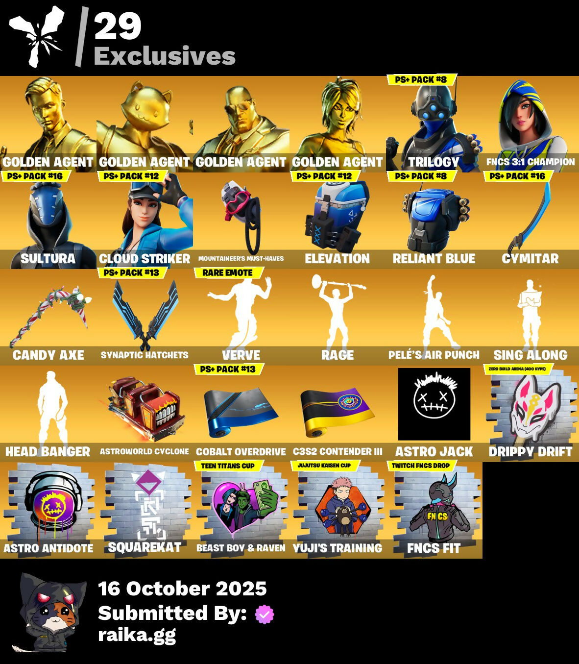 [PC/PSN/XBOX] 181 skins | GOLDEN AGENT | GOLDEN AGENT | GOLDEN AGENT | GOLDEN AGENT | Trilogy | FNCS 3:1 Champion | Sultura | Cloud Striker | Midas Rex | 150 VB / FN