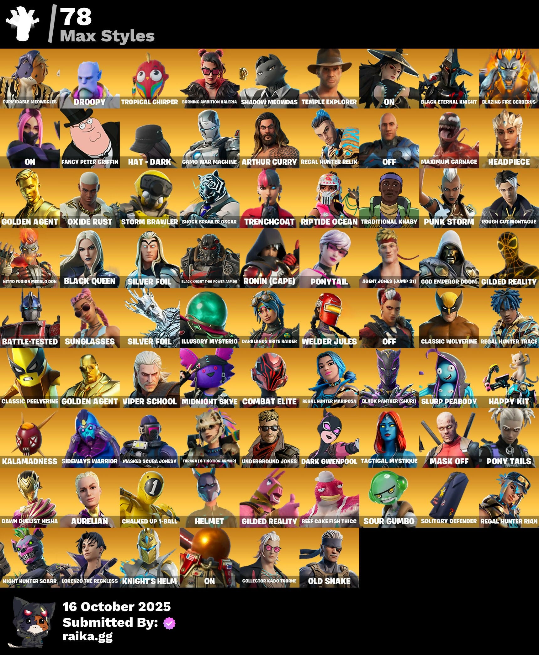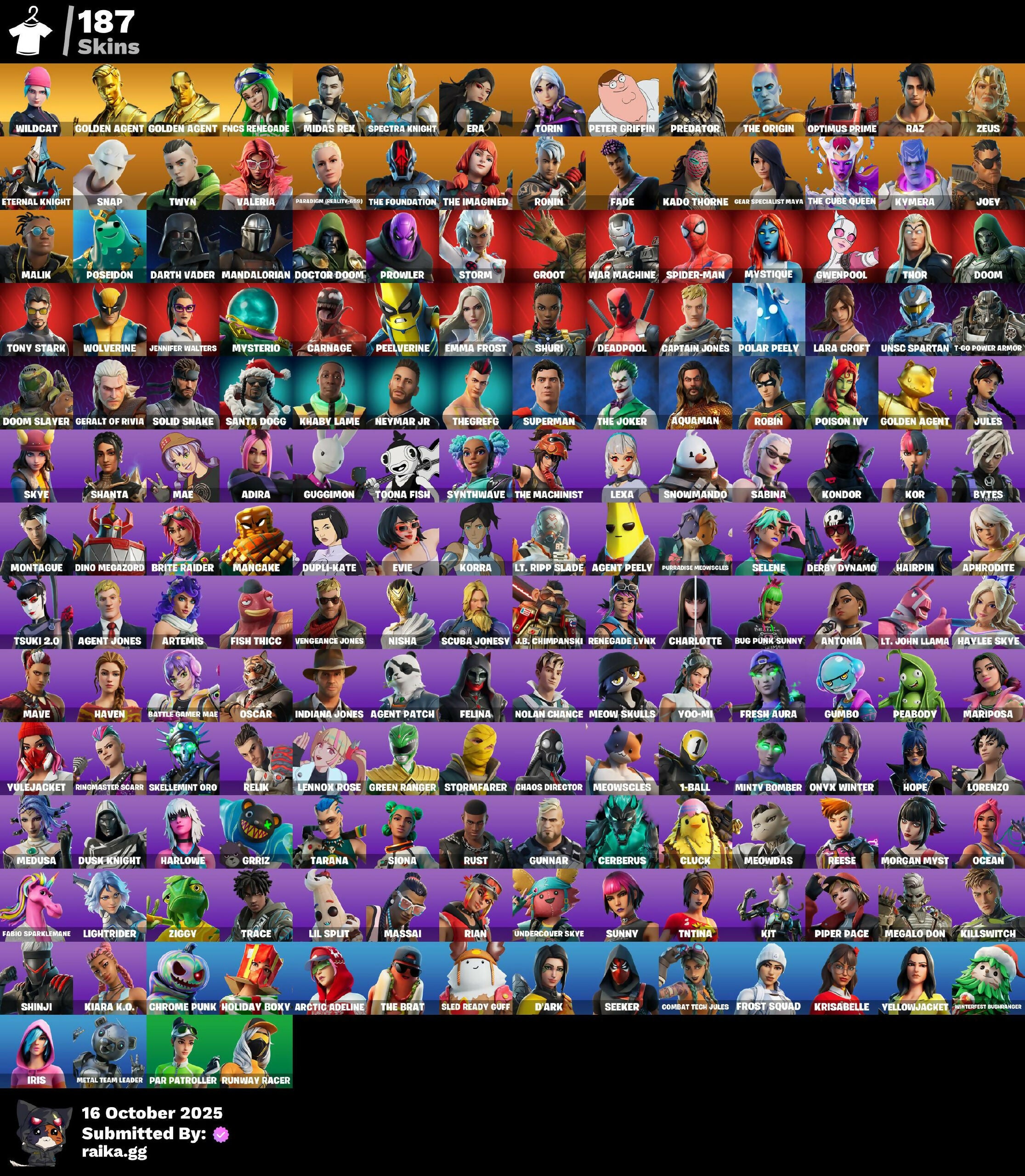 [PC/PSN/XBOX] 187 skins | Wildcat | GOLDEN AGENT | GOLDEN AGENT | FNCS Renegade | Midas Rex | Spectra Knight | Era | Torin | Peter Griffin | Predator | 250 VB / FN
