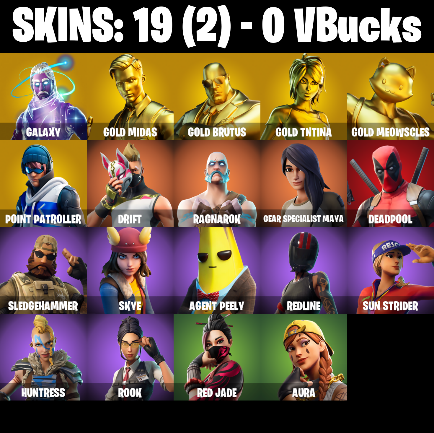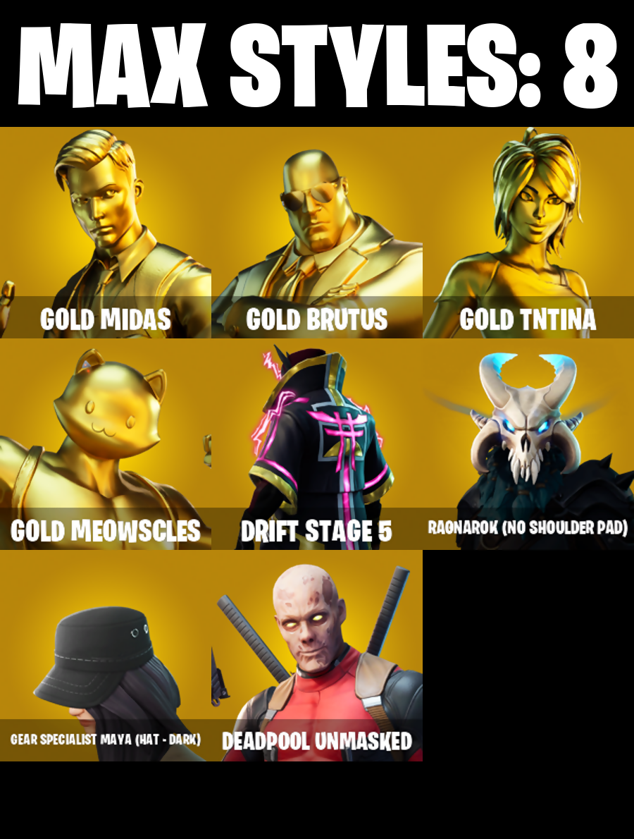 PC/PSN/XBOX |19 skins | Galaxy | Deadpool | Gold Midas | Gold Brutus | Gold TNTina | Gold Meowscles | Orange Justice | Drift | Galactic Disc | #B791