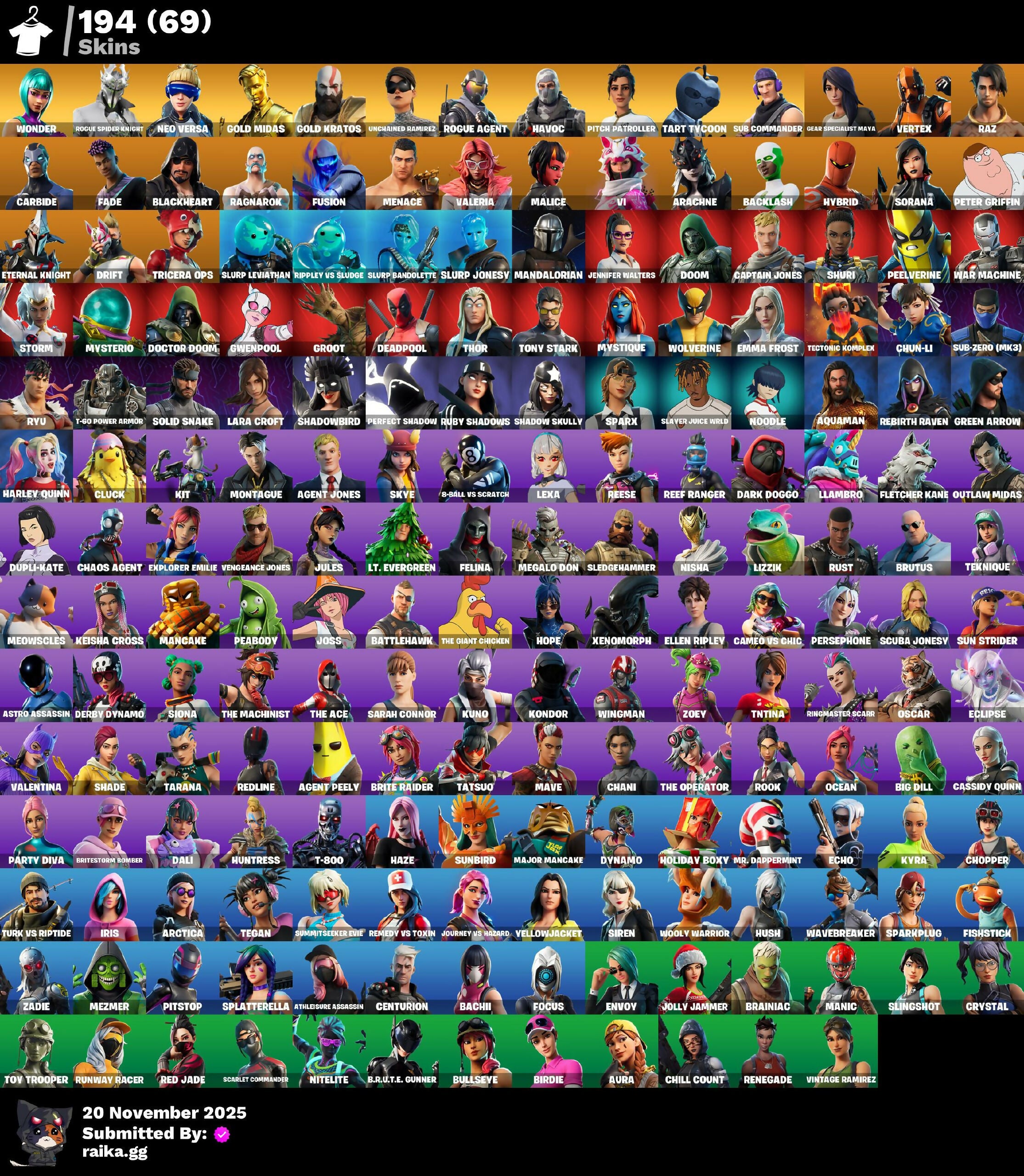 [PC/PSN/XBOX] 194 skins | Wonder | Rogue Spider Knight | Neo Versa | Gold Midas | Gold Kratos | Unchained Ramirez | Rogue Agent | Havoc | Pitch Patroller | 300 VB