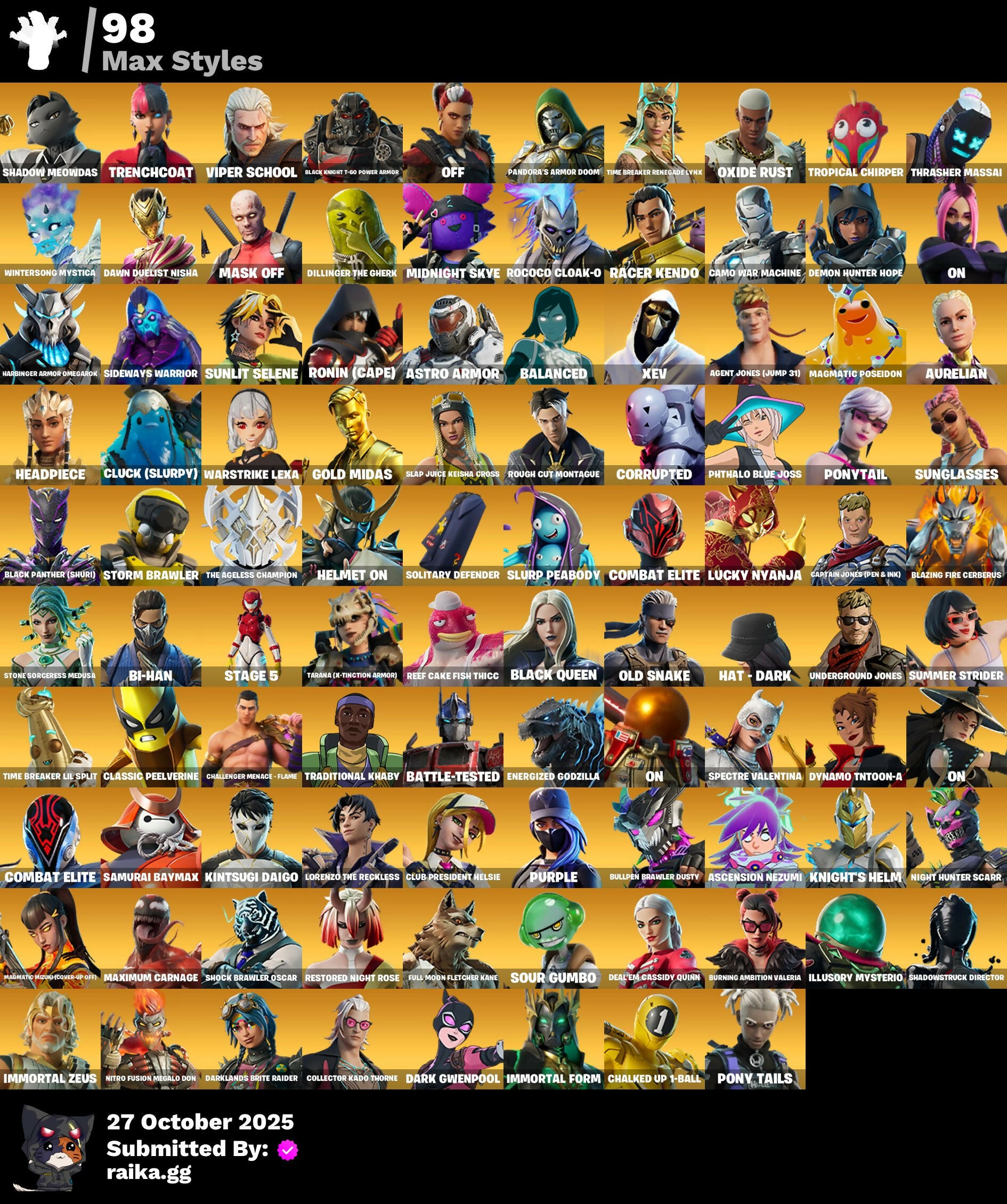 [PC/PSN/XBOX] 198 skins | Gold Midas | Spire Assassin | Paradigm (Reality-659) | Optimus Prime | Gear Specialist Maya | Nezumi | Kado Thorne | Rox | Predator | 450 VB / FN