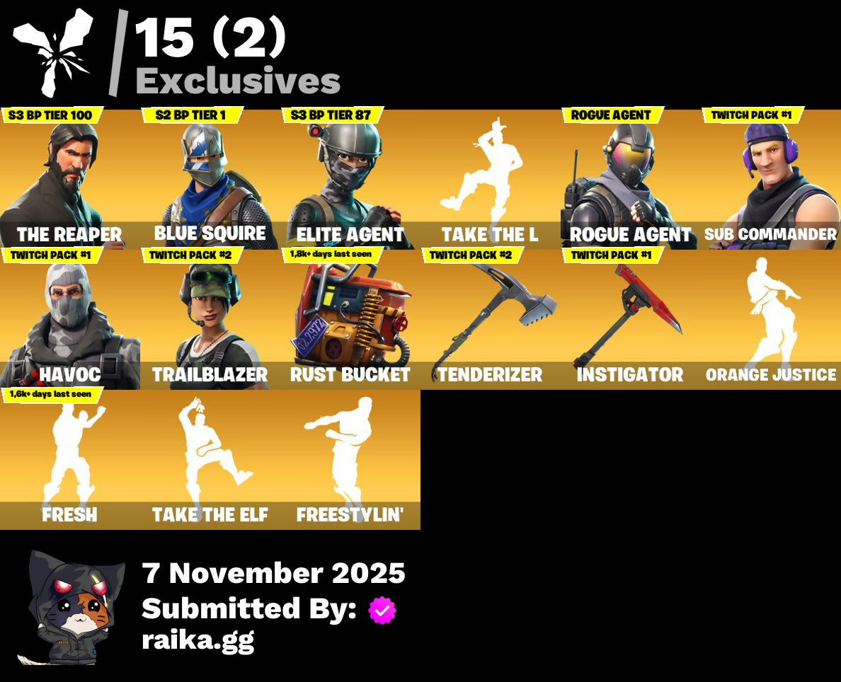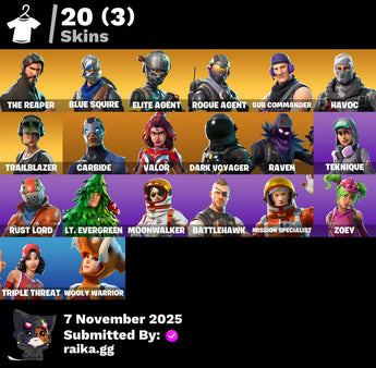 [PC/PSN/XBOX] 20 skins | The Reaper | Blue Squire | Elite Agent | Rogue Agent | Sub Commander | Havoc | Trailblazer | Carbide | Valor | Dark Voyager | Raven | 350 VB / FN