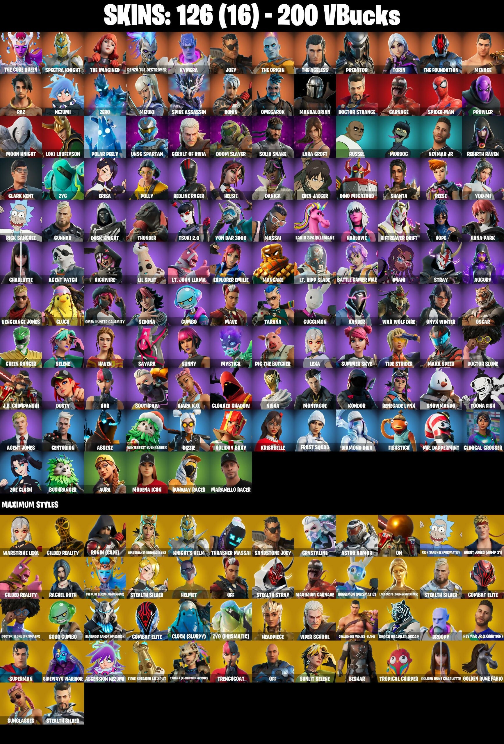 (PC/PSN/XBOX) 200 VB) 126 skins | The Cube Queen | Spectra Knight | The Imagined | Renzo the Destroyer | Kymera | Joey | The Origin