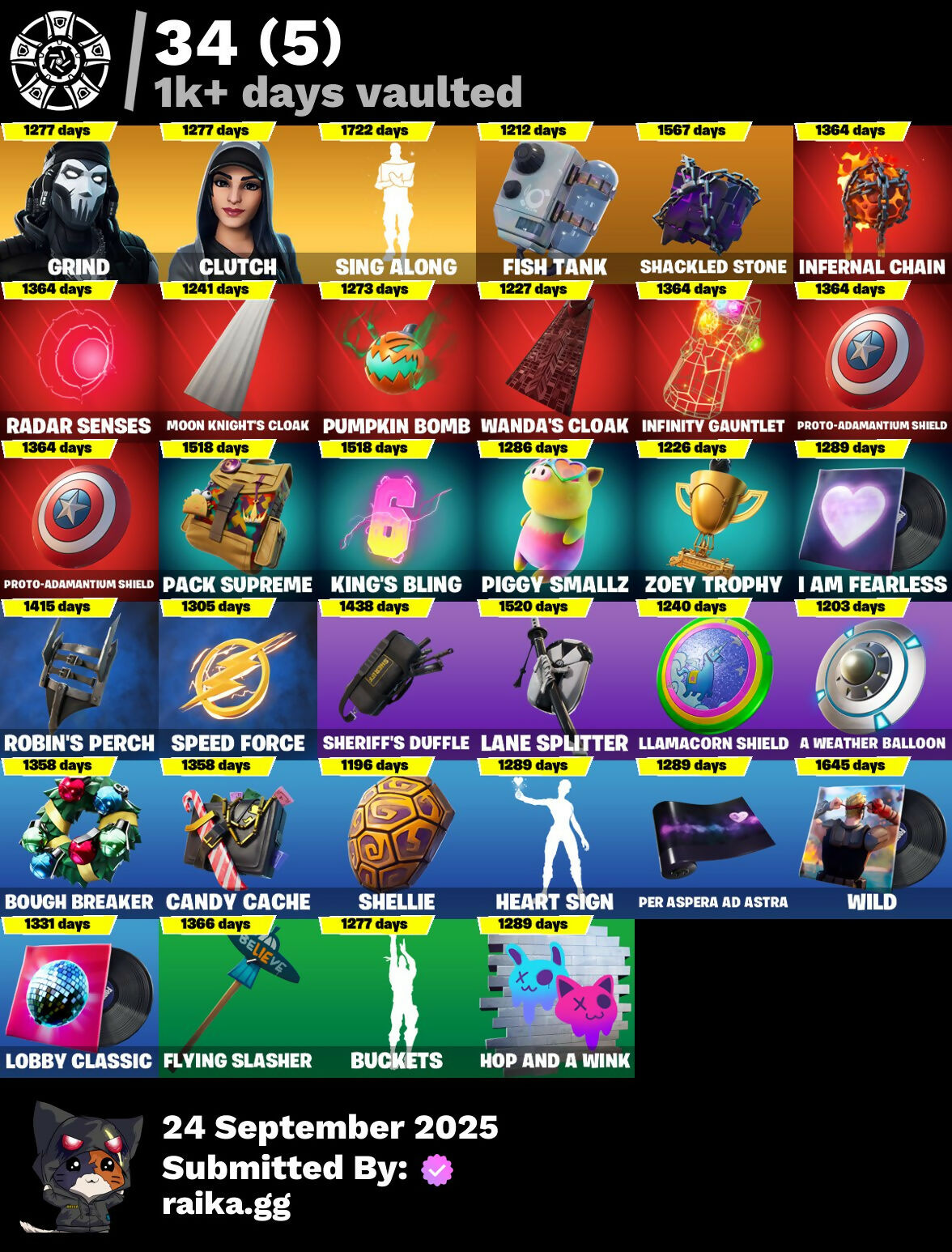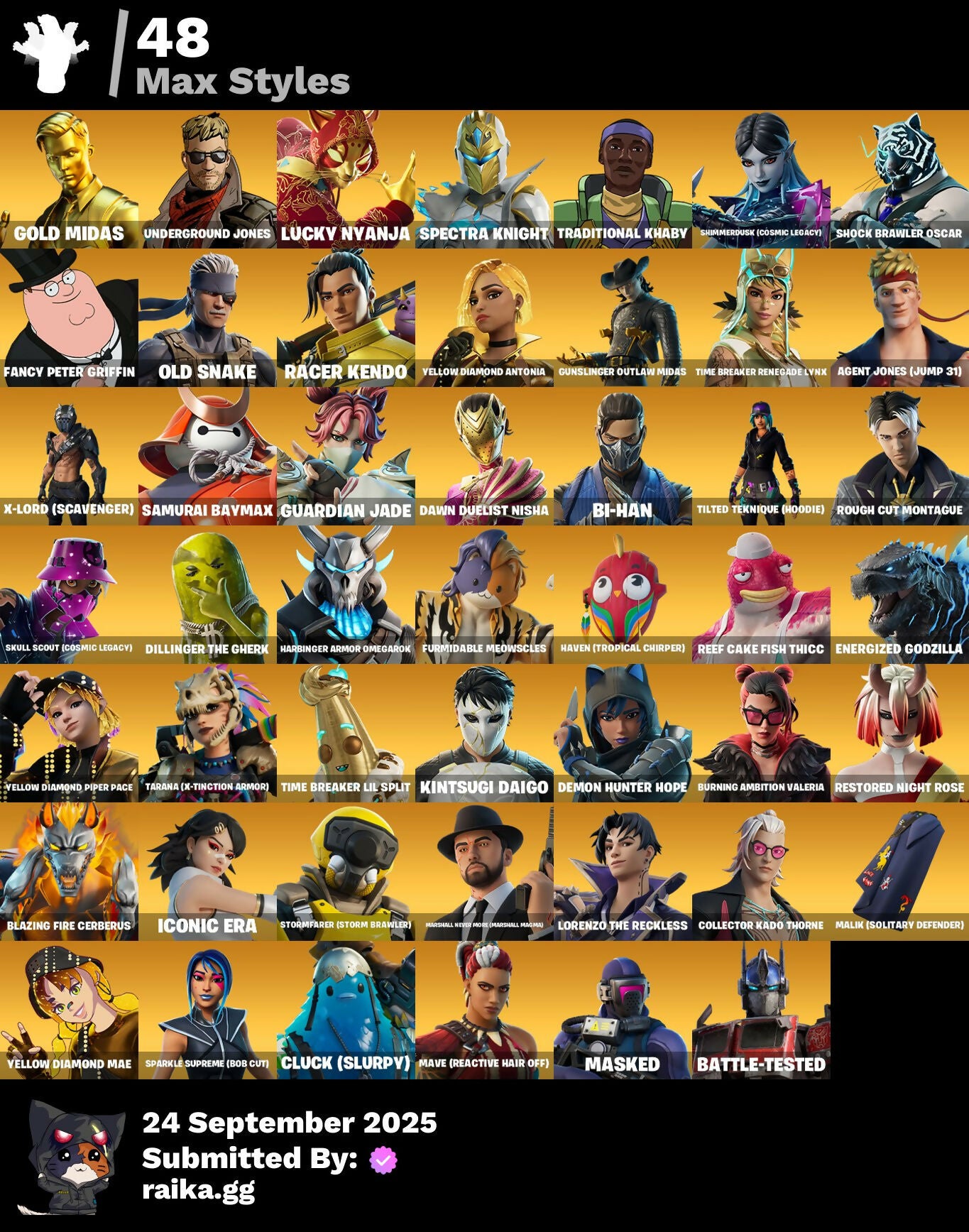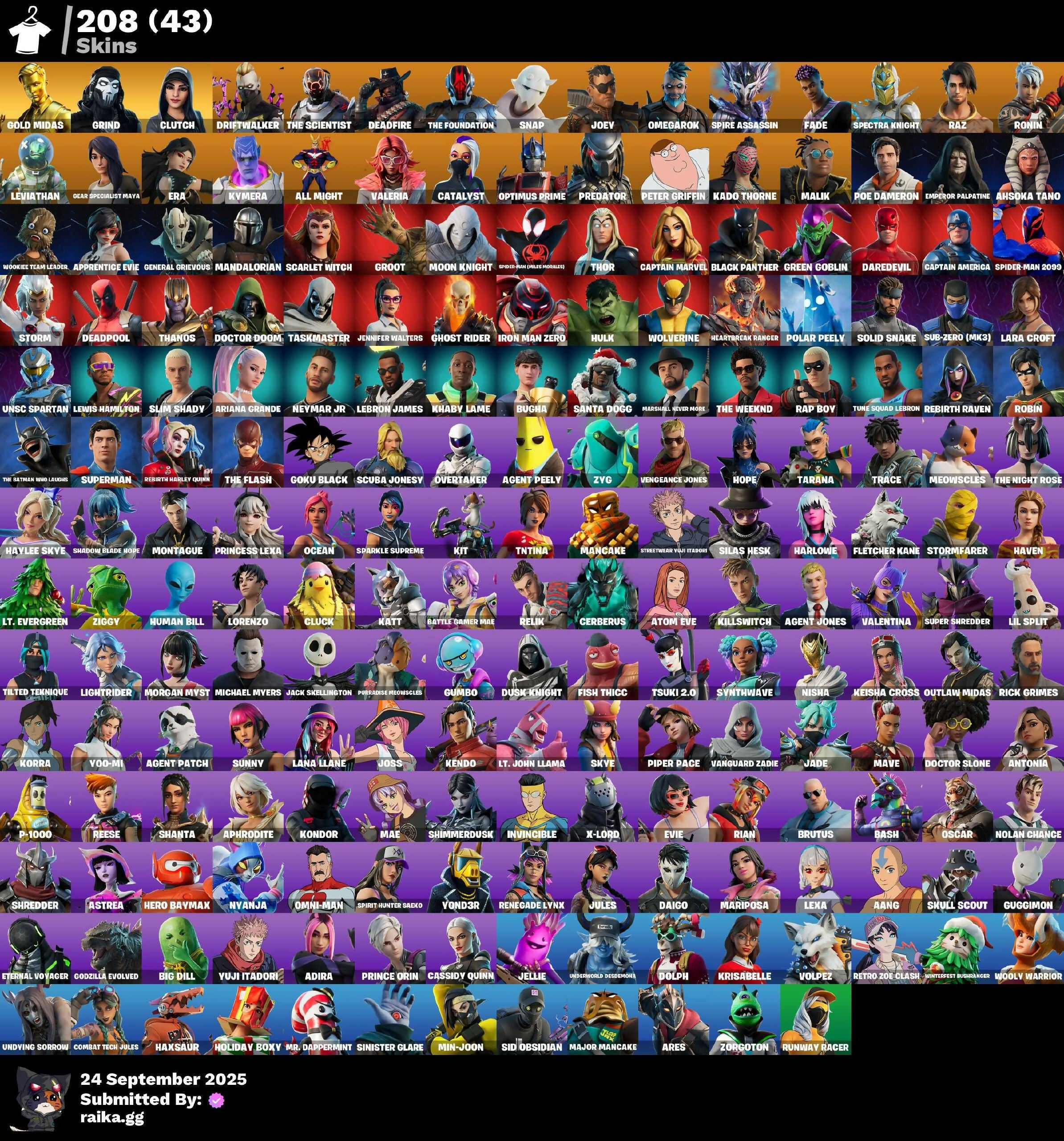 [PC/PSN/XBOX] 208 skins | Gold Midas | Grind | Clutch | Driftwalker | The Scientist | Deadfire | The Foundation | Snap | Joey | Omegarok | Spire Assassin | 500 VB / FN