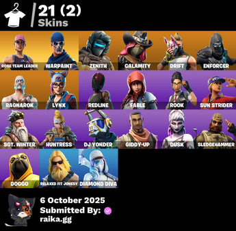 [PC/PSN/XBOX] 21 skins | OG STW | Zenith | Calamity | Drift | Enforcer | Ragnarok | Lynx | Redline | Fable | Rook | Sun Strider | Sgt. Winter | Huntress | 650 VB / FN