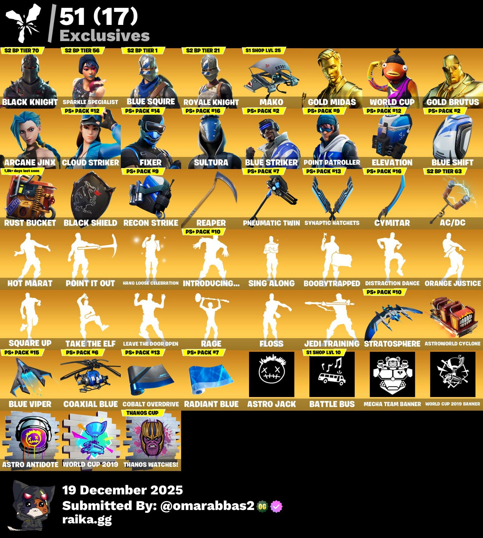 [PC/PSN/XBOX] 210 skins | Black Knight | Sparkle Specialist | Blue Squire | Royale Knight | Gold Midas | WORLD CUP | Gold Brutus | Arcane Jinx | 850 VB