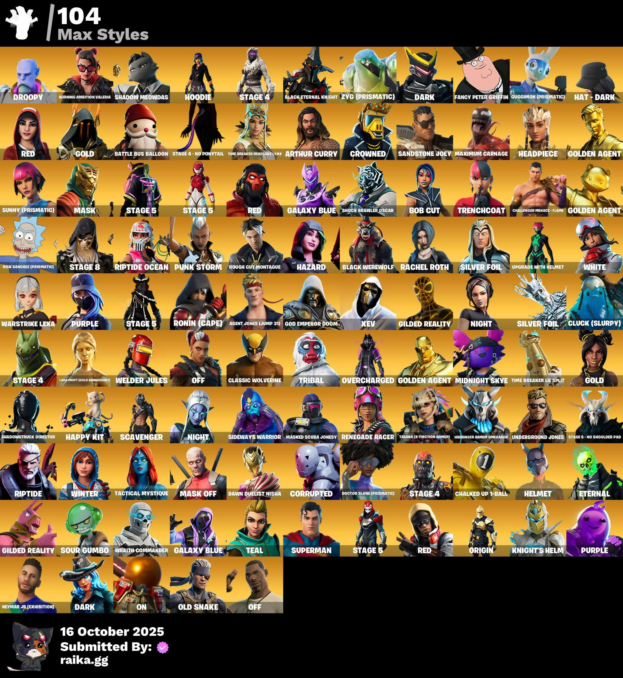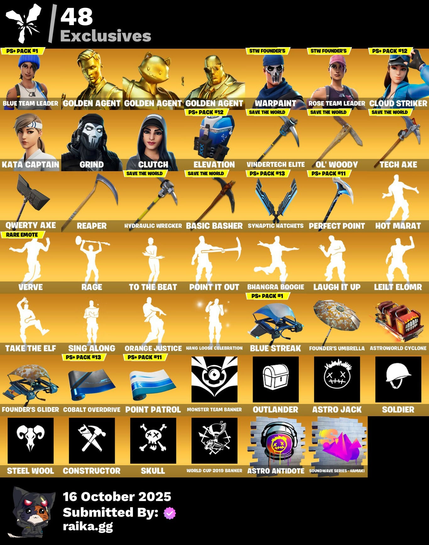 [PC/PSN/XBOX] 210 skins | OG STW | Blue Team Leader | GOLDEN AGENT | GOLDEN AGENT | GOLDEN AGENT | Cloud Striker | Kata Captain | Grind | Clutch | Luxe | 350 VB / FN