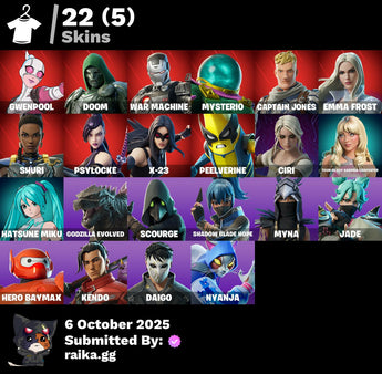 [PC/PSN/XBOX] 22 skins | Gwenpool | Doom | War Machine | Mysterio | Captain Jones | Emma Frost | Shuri | Psylocke | X-23 | Peelverine | Ciri | 500 VB / FN