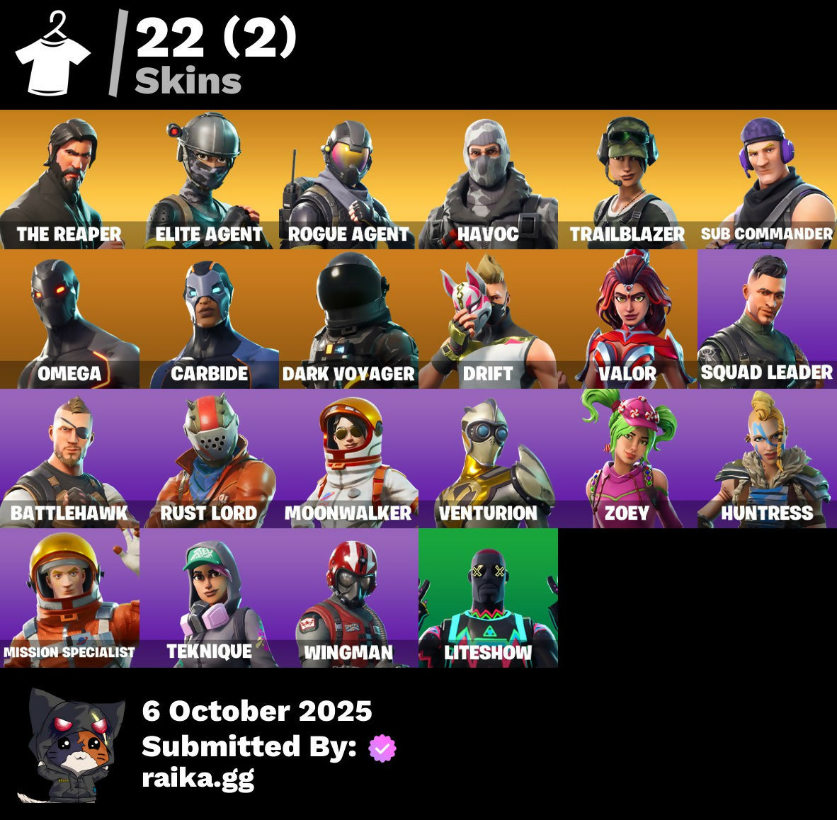 [PC/PSN/XBOX] 22 skins | The Reaper | Elite Agent | Rogue Agent | Havoc | Trailblazer | Sub Commander | Omega | Carbide | Dark Voyager | Drift | Valor | 1350 VB / FN
