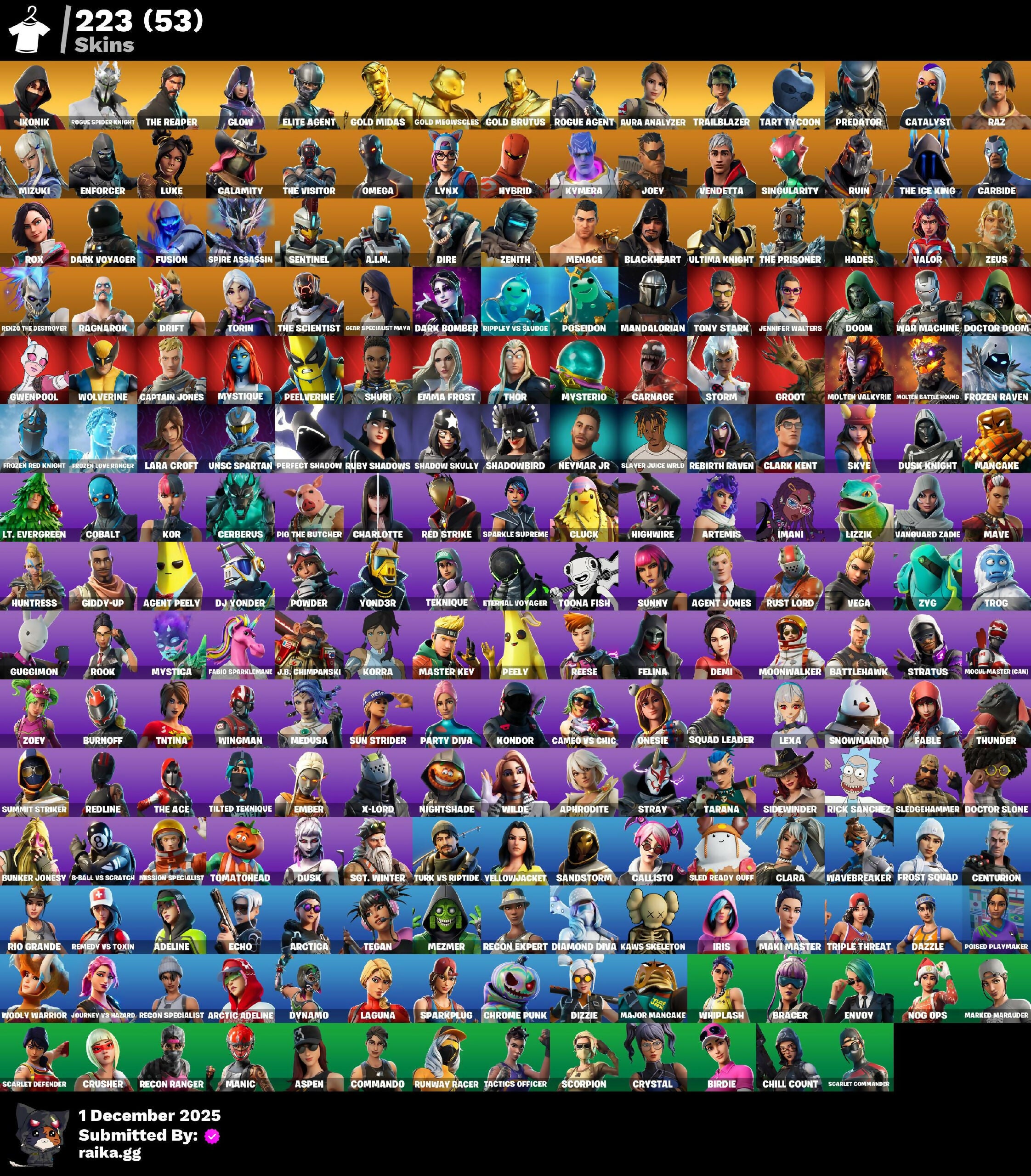 [PC/PSN/XBOX] 223 skins | IKONIK | Rogue Spider Knight | The Reaper | Glow | Elite Agent | Gold Midas | Gold Meowscles | Gold Brutus | Rogue Agent | 1650 VB