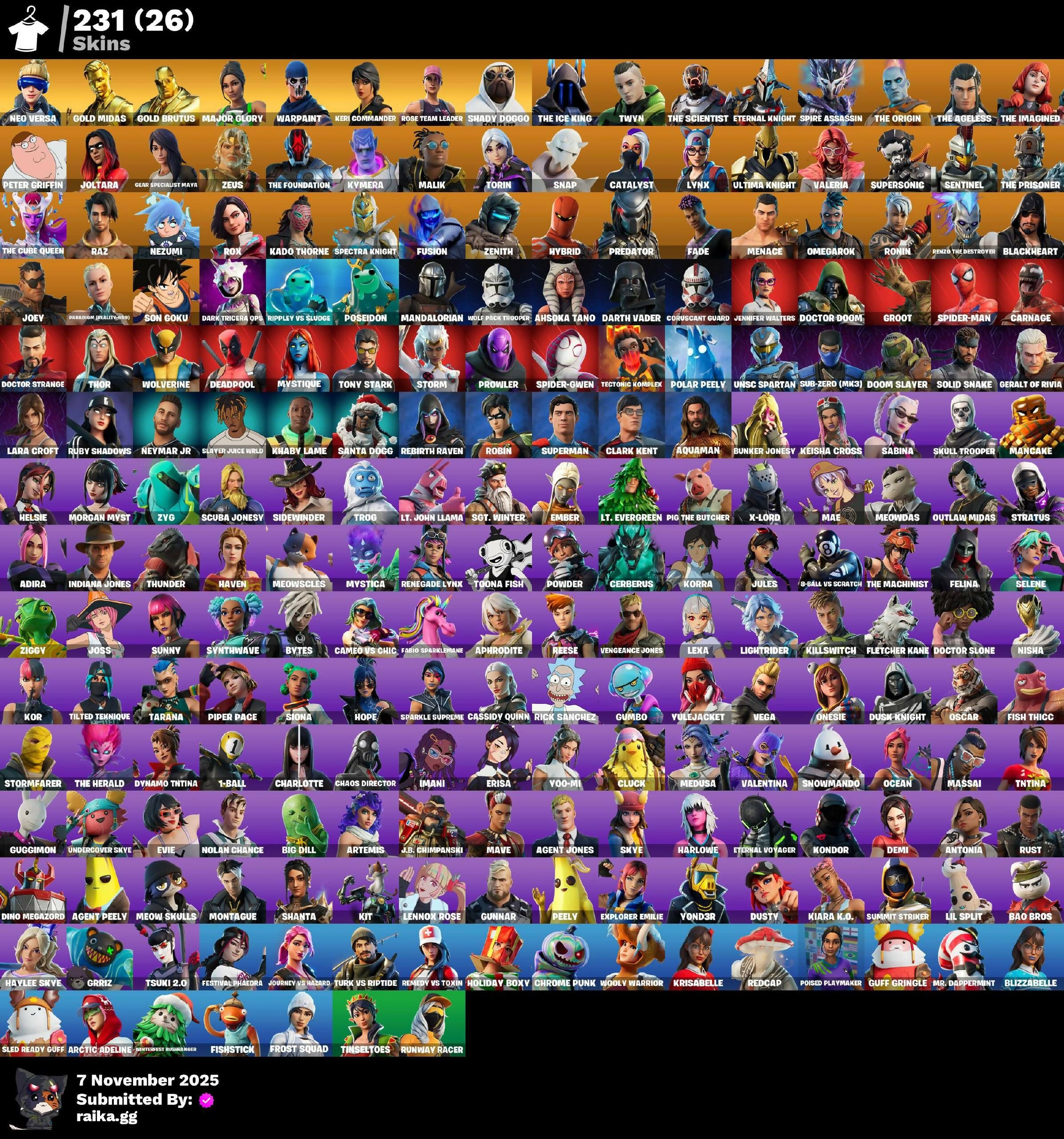 [PC/PSN/XBOX] 231 skins | OG STW | Neo Versa | Gold Midas | Gold Brutus | Major Glory | Keri Commander | Shady Doggo | The Ice King | Twyn | The Scientist | 550 VB / FN