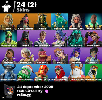 [PC/PSN/XBOX] 24 skins | Zeus | Kado Thorne | Hades | Poseidon | Ahsoka Tano | Khaby Lame | Green Roots Billie | Felina | Nolan Chance | Medusa | Cerberus | 100 VB / FN