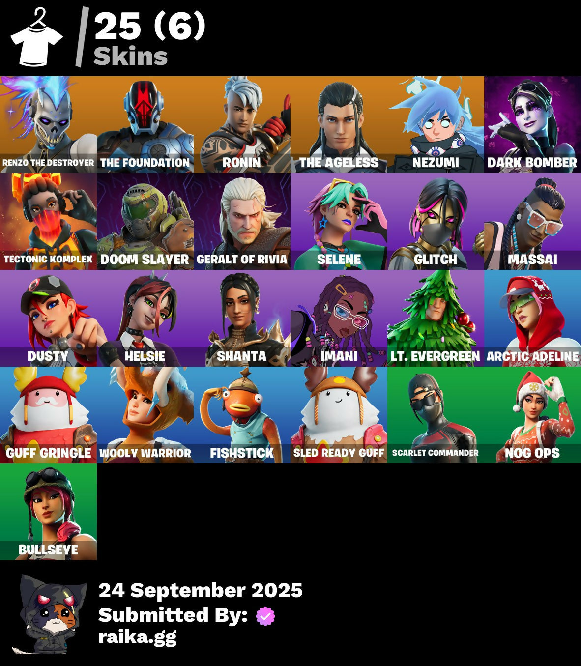[PC/PSN/XBOX] 25 skins | Renzo the Destroyer | The Foundation | Ronin | The Ageless | Nezumi | Dark Bomber | Tectonic Komplex | Doom Slayer | Geralt of Rivia | 500 VB / FN
