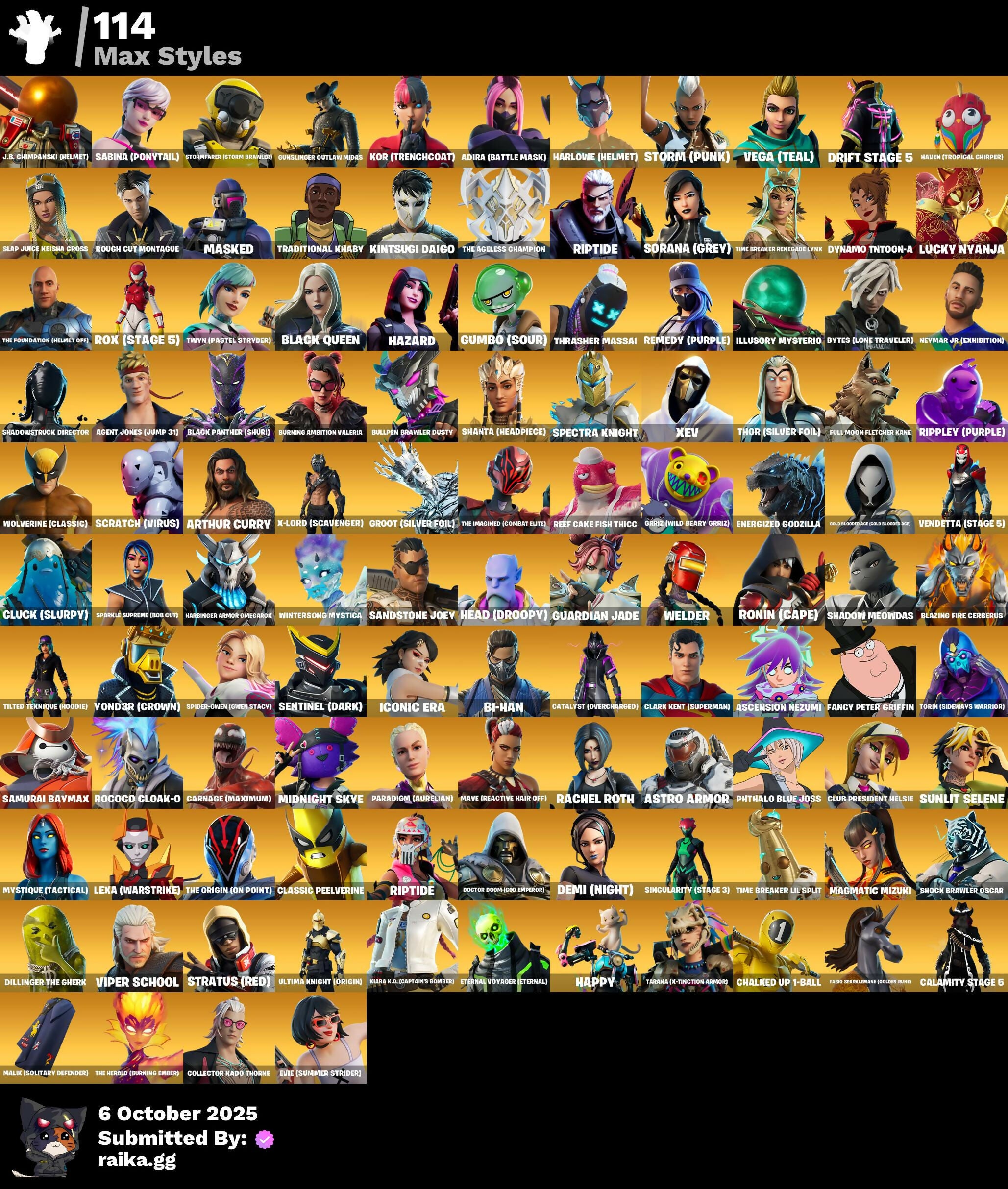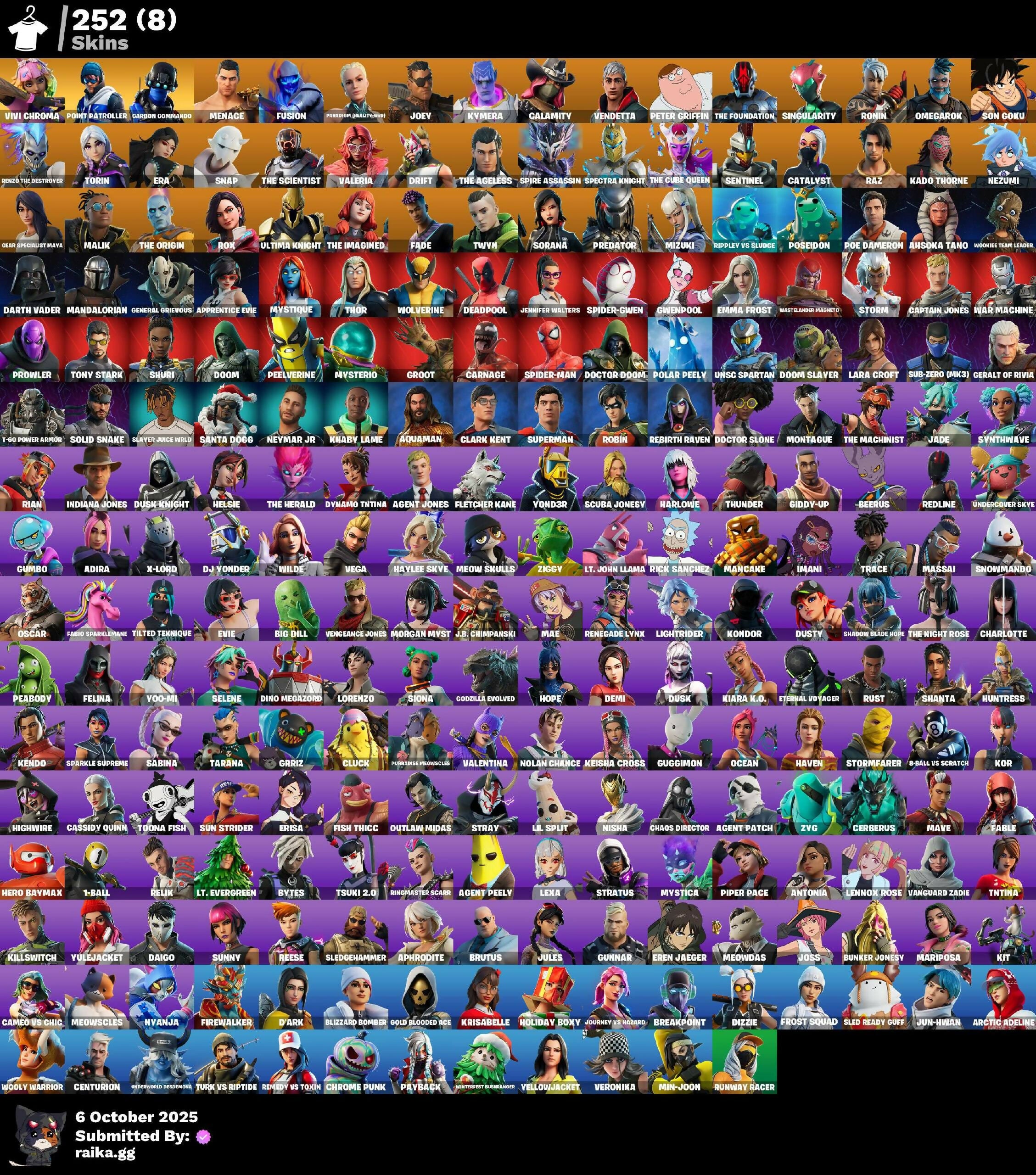 [PC/PSN/XBOX] 252 skins | Vivi Chroma | Point Patroller | Carbon Commando | Menace | Fusion | Paradigm (Reality-659) | Joey | Kymera | Calamity | Vendetta | 1500 VB / FN