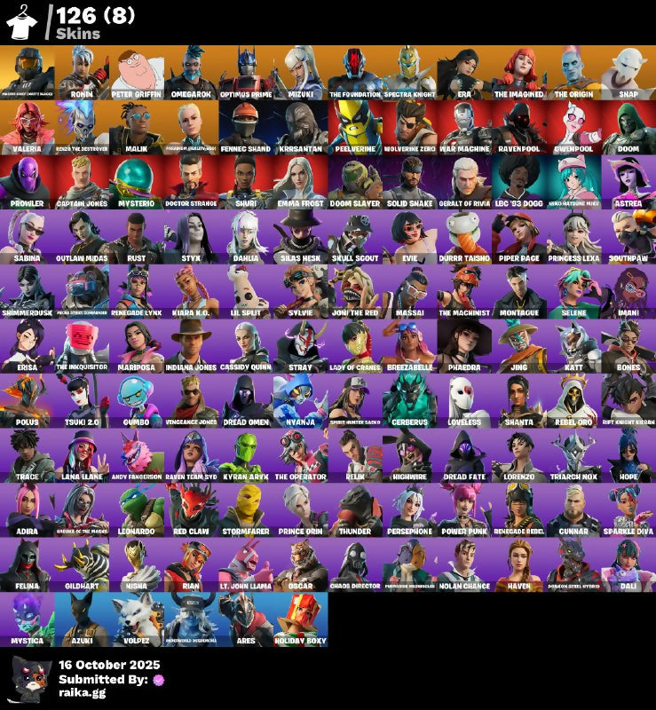 [PC/PSN/XBOX] 25250 VBUCKS 126 skins | Master Chief (Matte Black) | Ronin | Peter Griffin | Omegarok | Optimus Prime | Mizuki | The Foundation | Spectra Knight | Era |