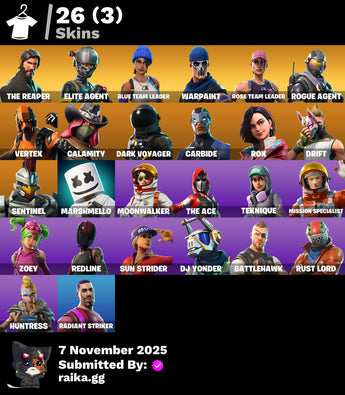 [PC/PSN/XBOX] 26 skins | OG STW | The Reaper | Elite Agent | Blue Team Leader | Rogue Agent | Vertex | Calamity | Dark Voyager | Carbide | Rox | Drift | 1450 VB / FN