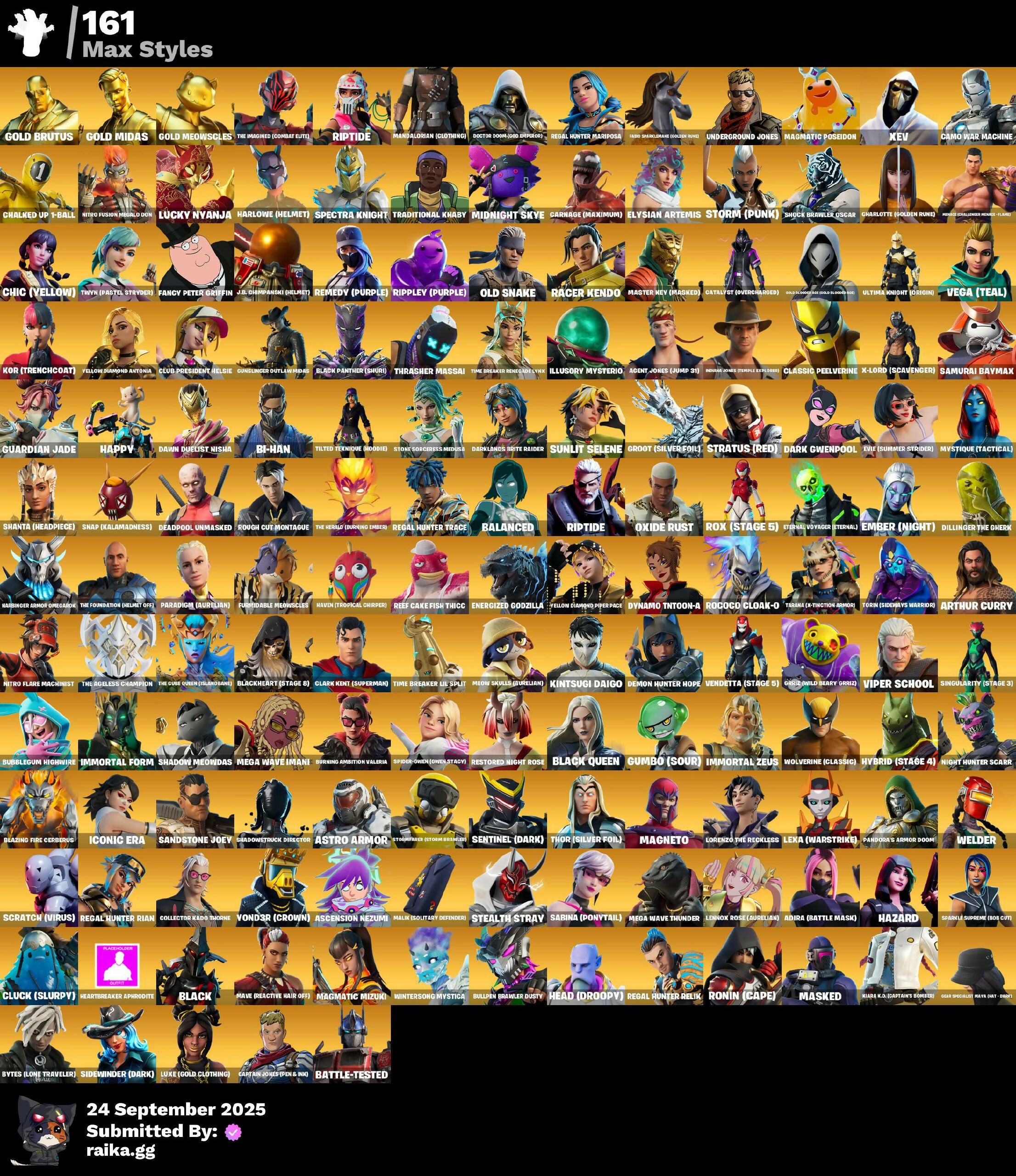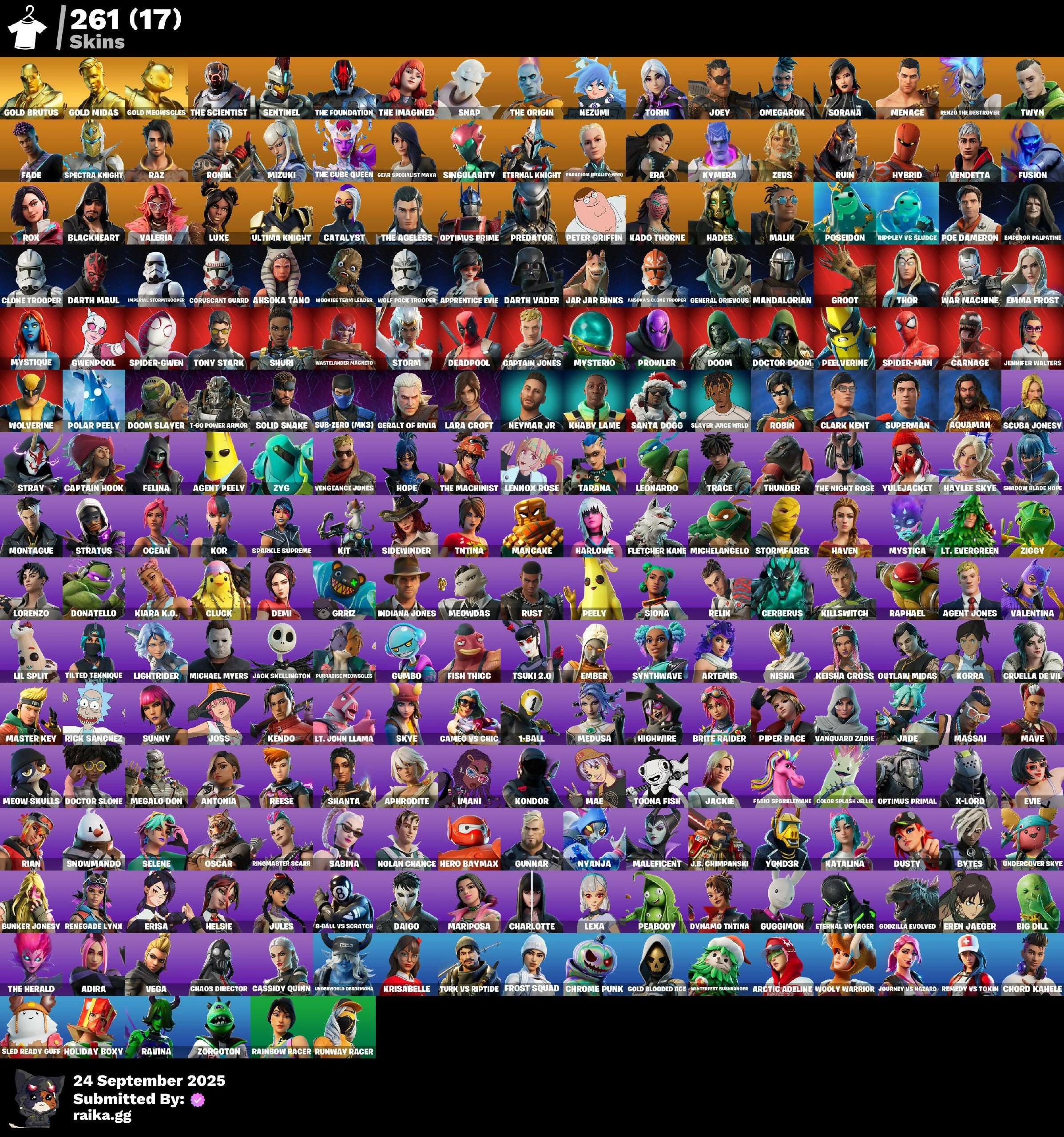 [PC/PSN/XBOX] 261 skins | Gold Brutus | Gold Midas | Gold Meowscles | The Scientist | Sentinel | The Foundation | The Imagined | Snap | The Origin | Nezumi | 800 VB / FN