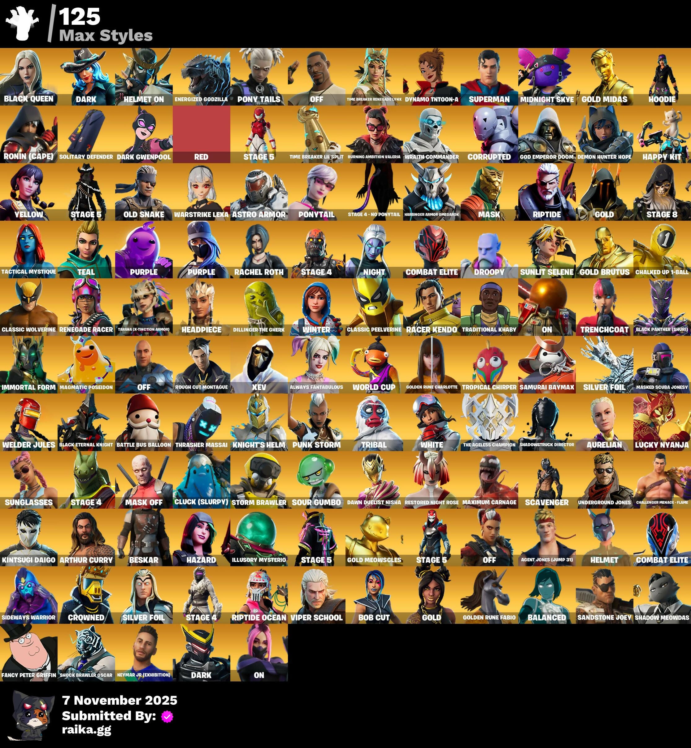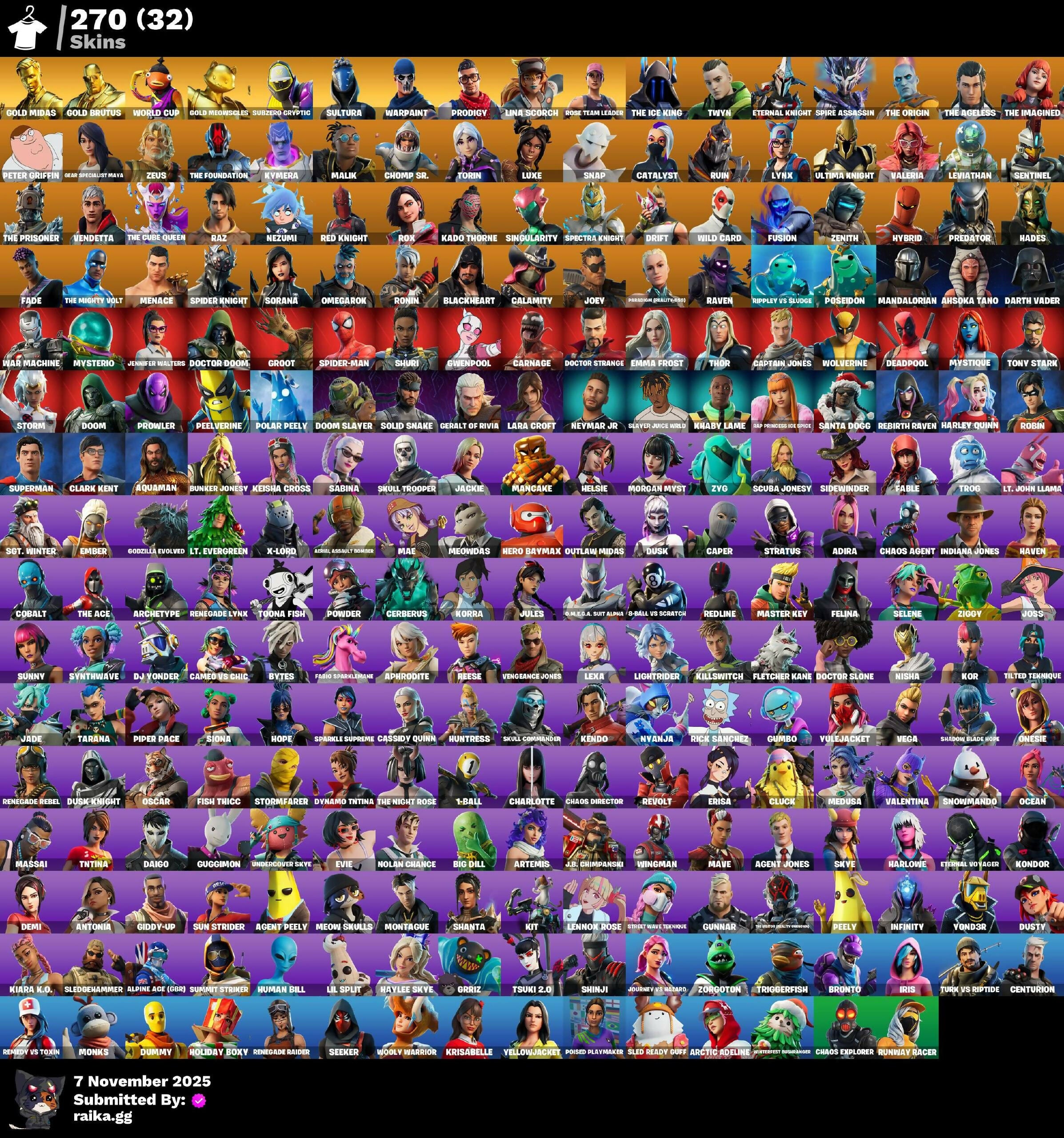 [PC/PSN/XBOX] 270 skins | OG STW | Renegade Raider | Gold Midas | Gold Brutus | WORLD CUP | Gold Meowscles | Subzero Cryptic | Sultura | Prodigy | Lina Scorch | 1550 VB / FN