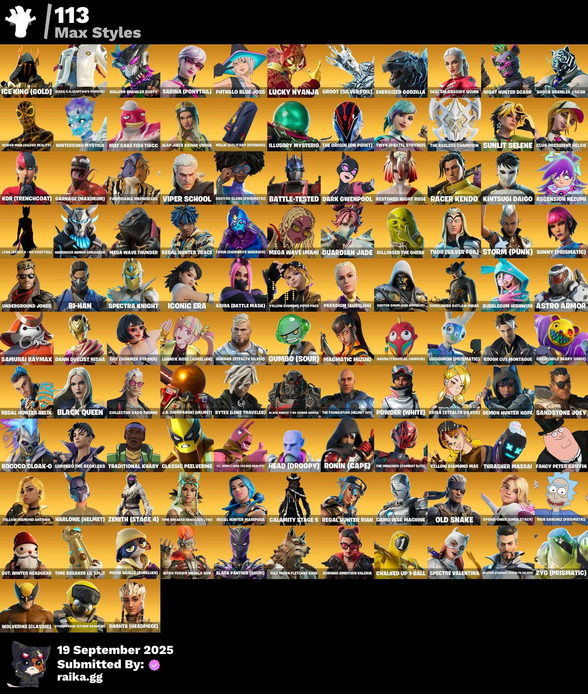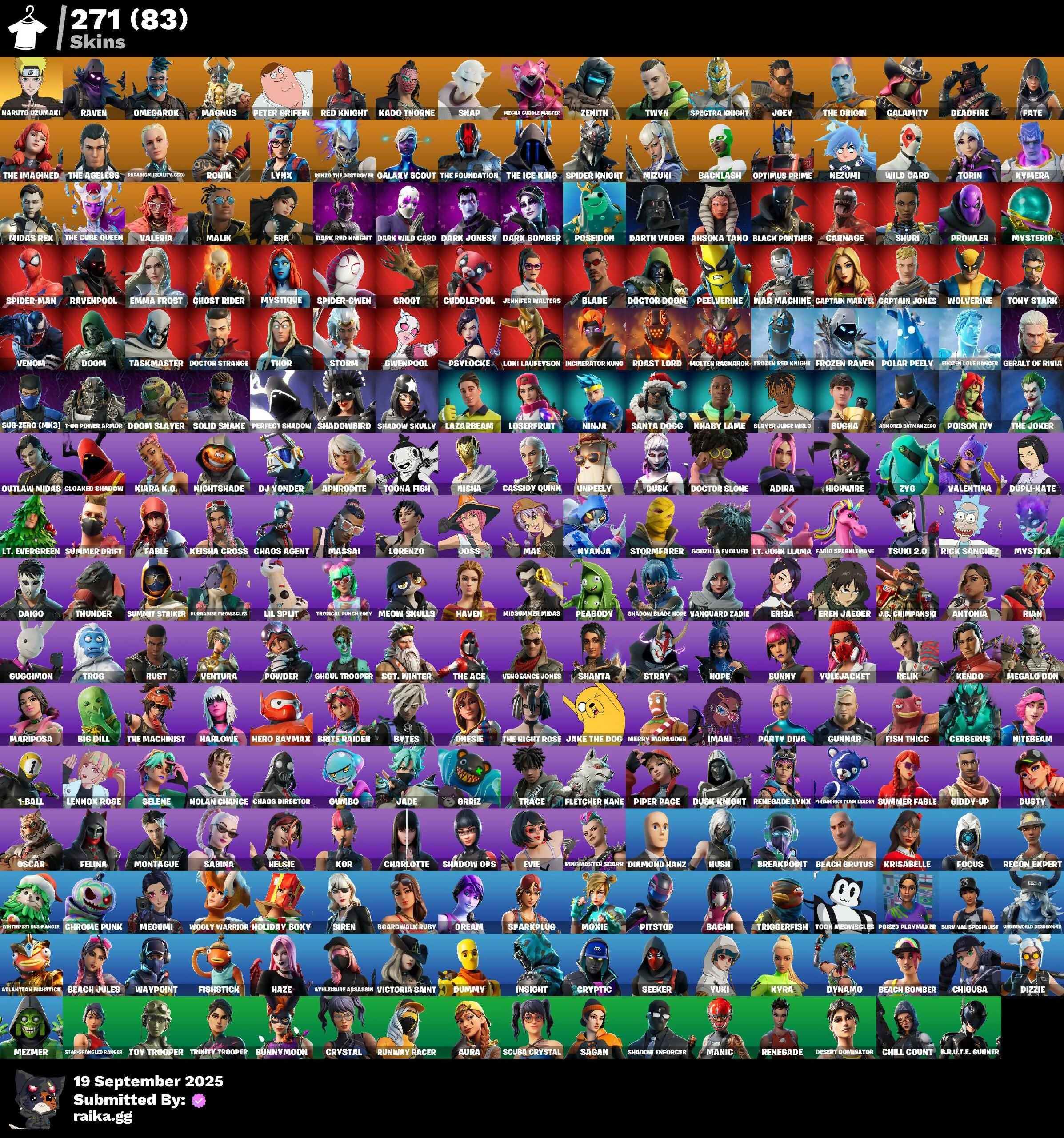 [PC/PSN/XBOX] 271 skins | Naruto Uzumaki | Raven | Omegarok | Magnus | Peter Griffin | Red Knight | Kado Thorne | Snap | Mecha Cuddle Master | Zenith | Twyn | 1350 VB / FN