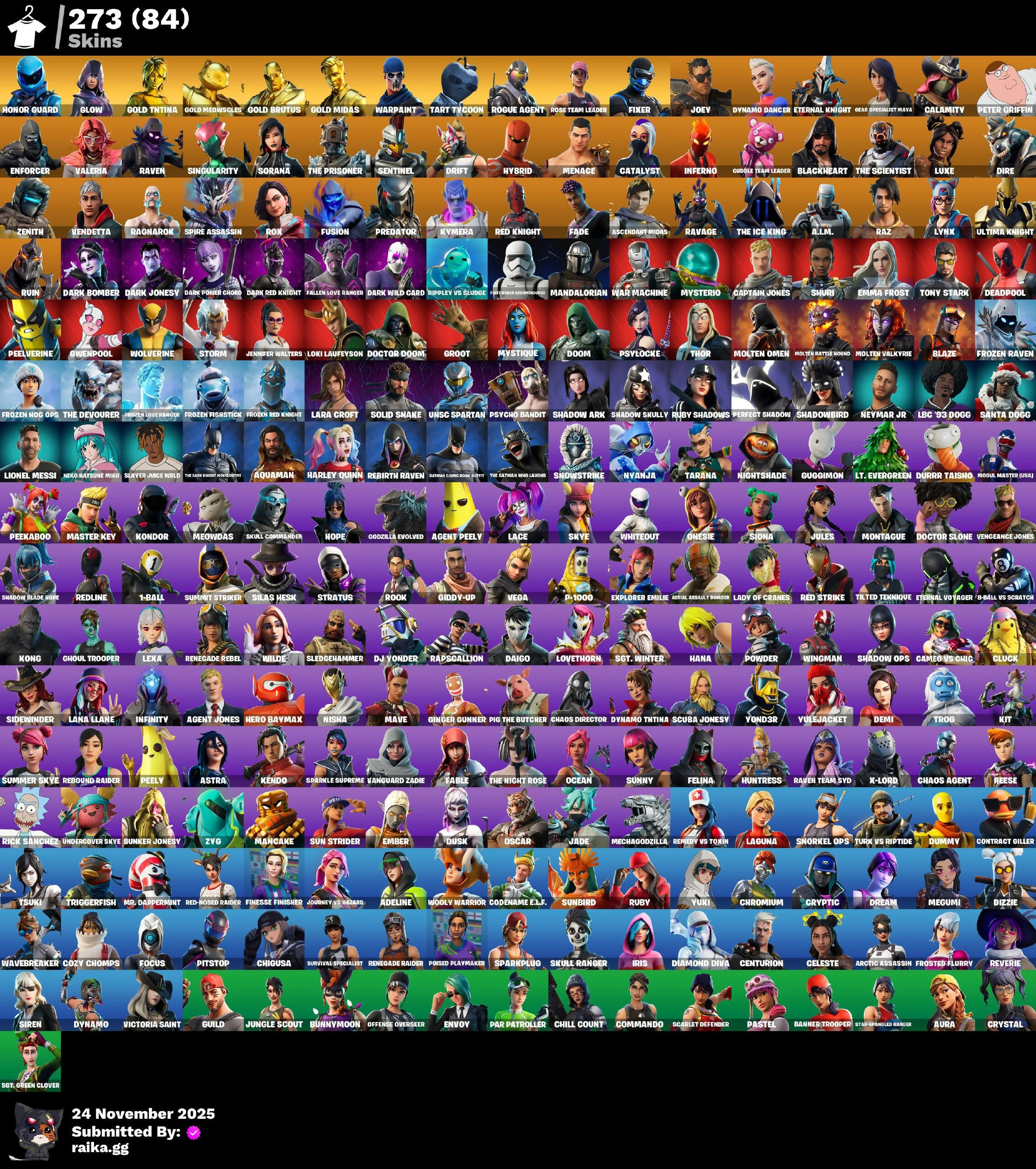 [PC/PSN/XBOX] 273 skins | OG STW | Honor Guard | Glow | Gold TNTina | Gold Meowscles | Gold Brutus | Gold Midas | Tart Tycoon | Rogue Agent | 50 VB
