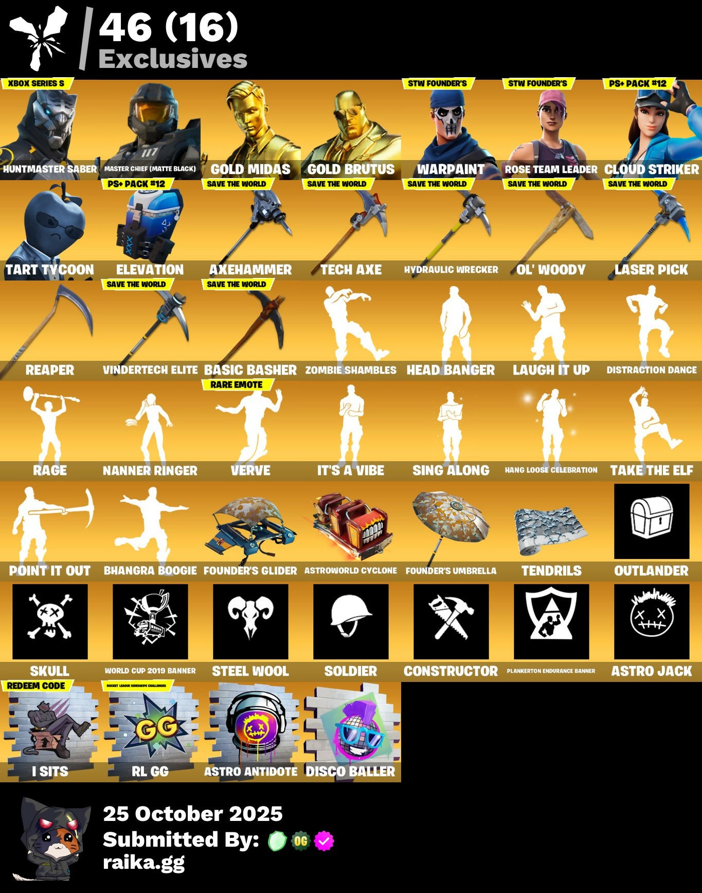 [PC/PSN/XBOX] 299 skins (2750 VB) OG STW | Huntmaster Saber | Master Chief (Matte Black) | Gold Midas | Gold Brutus | Cloud Striker | Tart Tycoon #593