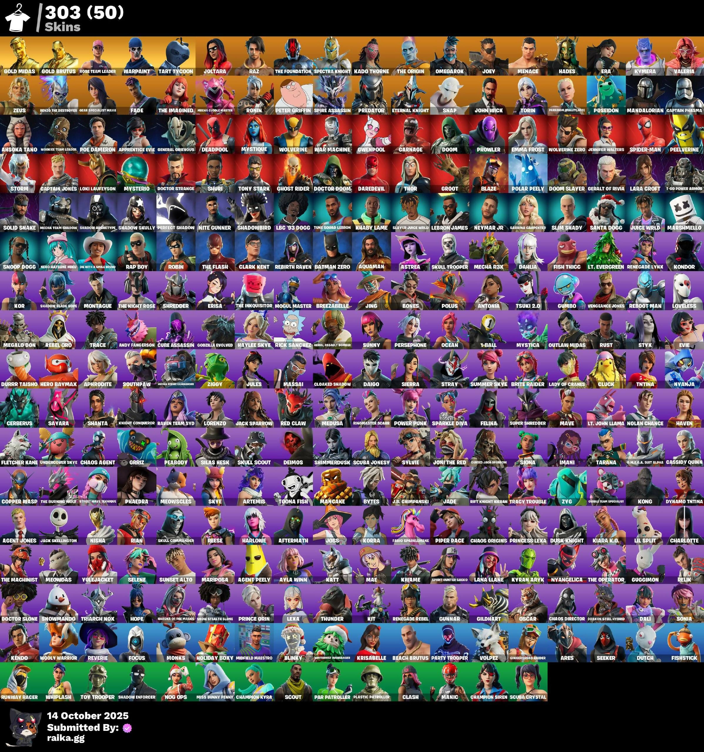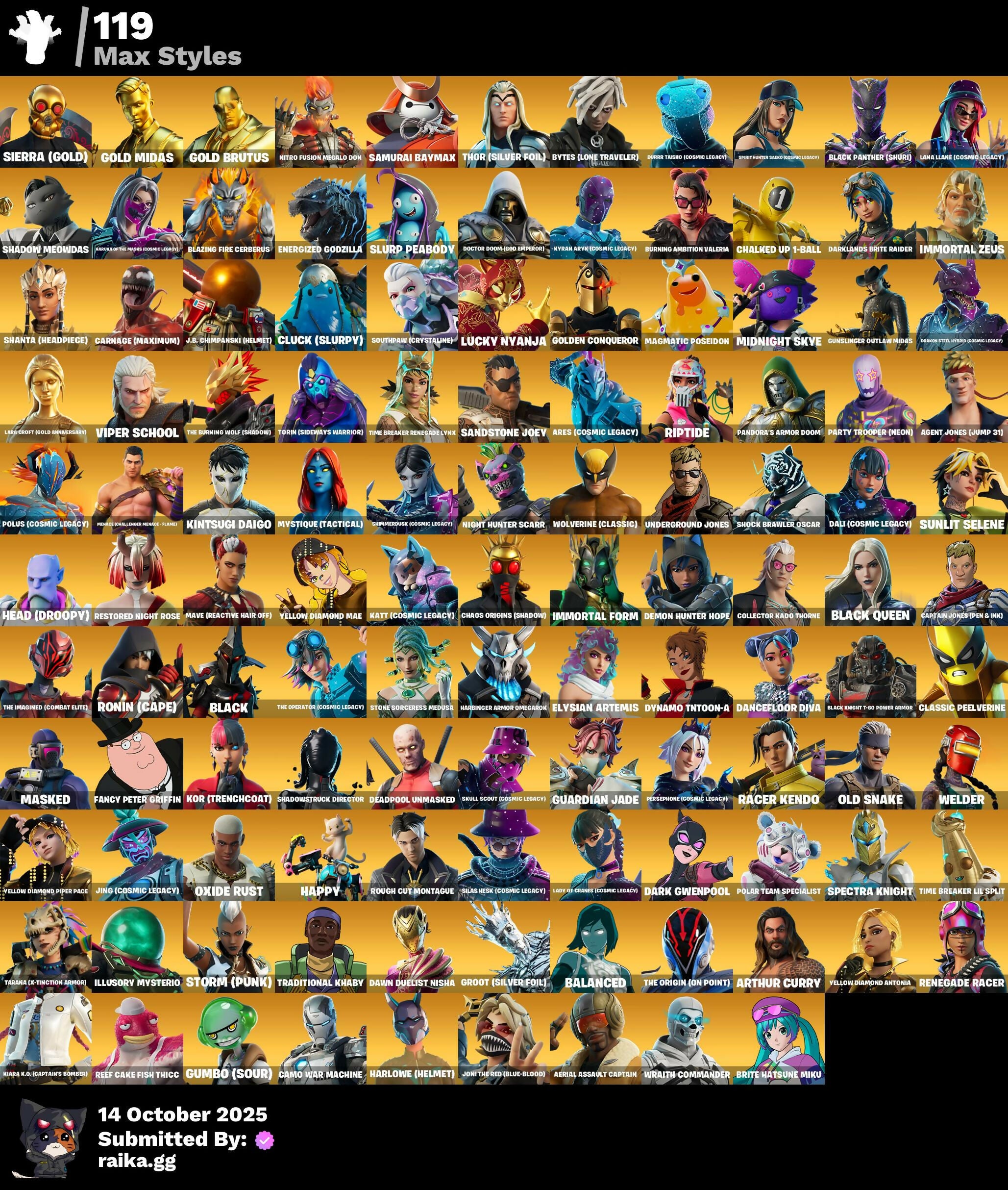 [PC/PSN/XBOX] 303 skins | OG STW | Gold Midas | Gold Brutus | Tart Tycoon | Joltara | Raz | The Foundation | Spectra Knight | Kado Thorne | The Origin | 1400 VB / FN