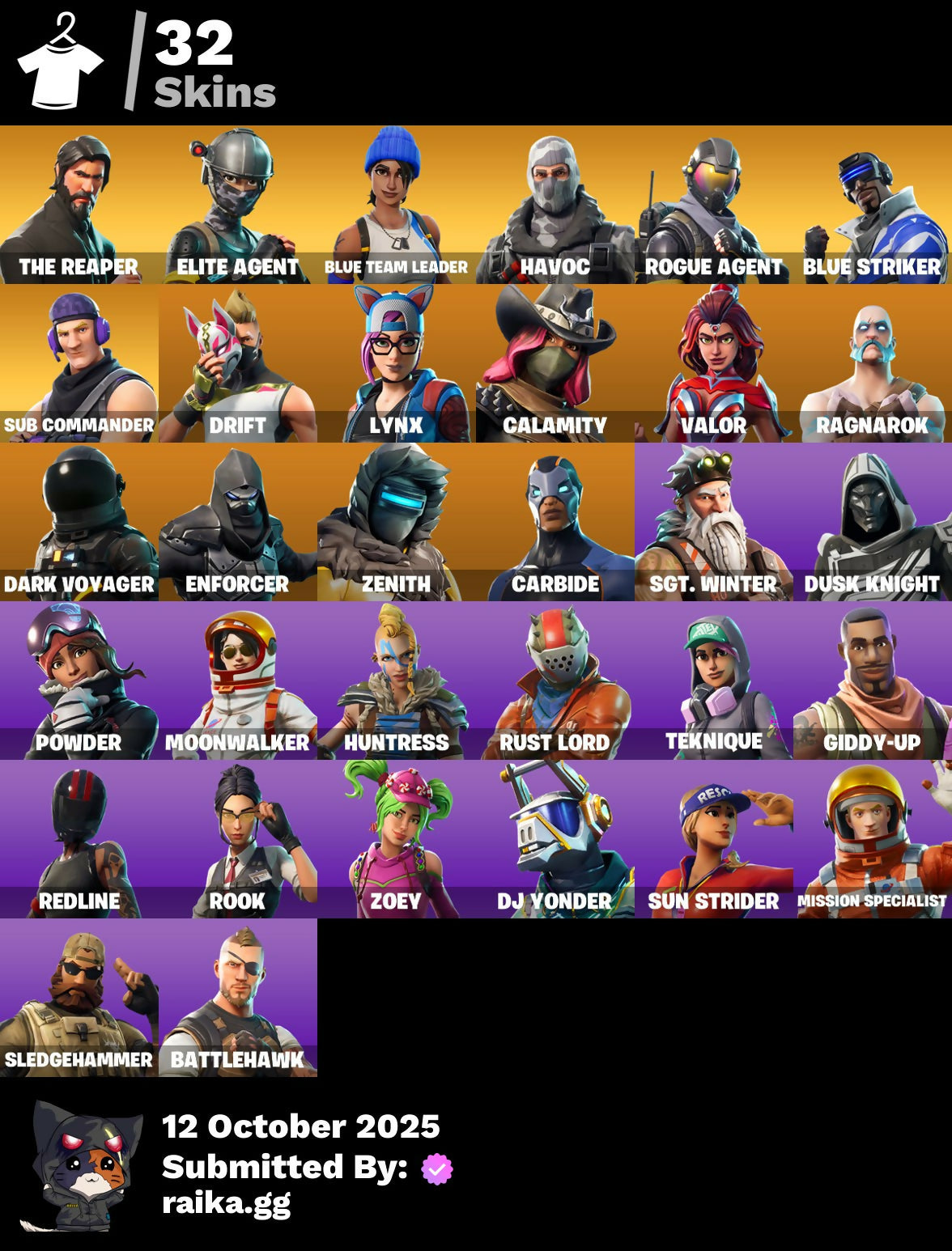 [PC/PSN/XBOX] 32 skins | The Reaper | Elite Agent | Blue Team Leader | Havoc | Rogue Agent | Blue Striker | Sub Commander | Drift | Lynx | Calamity | Valor | 550 VB