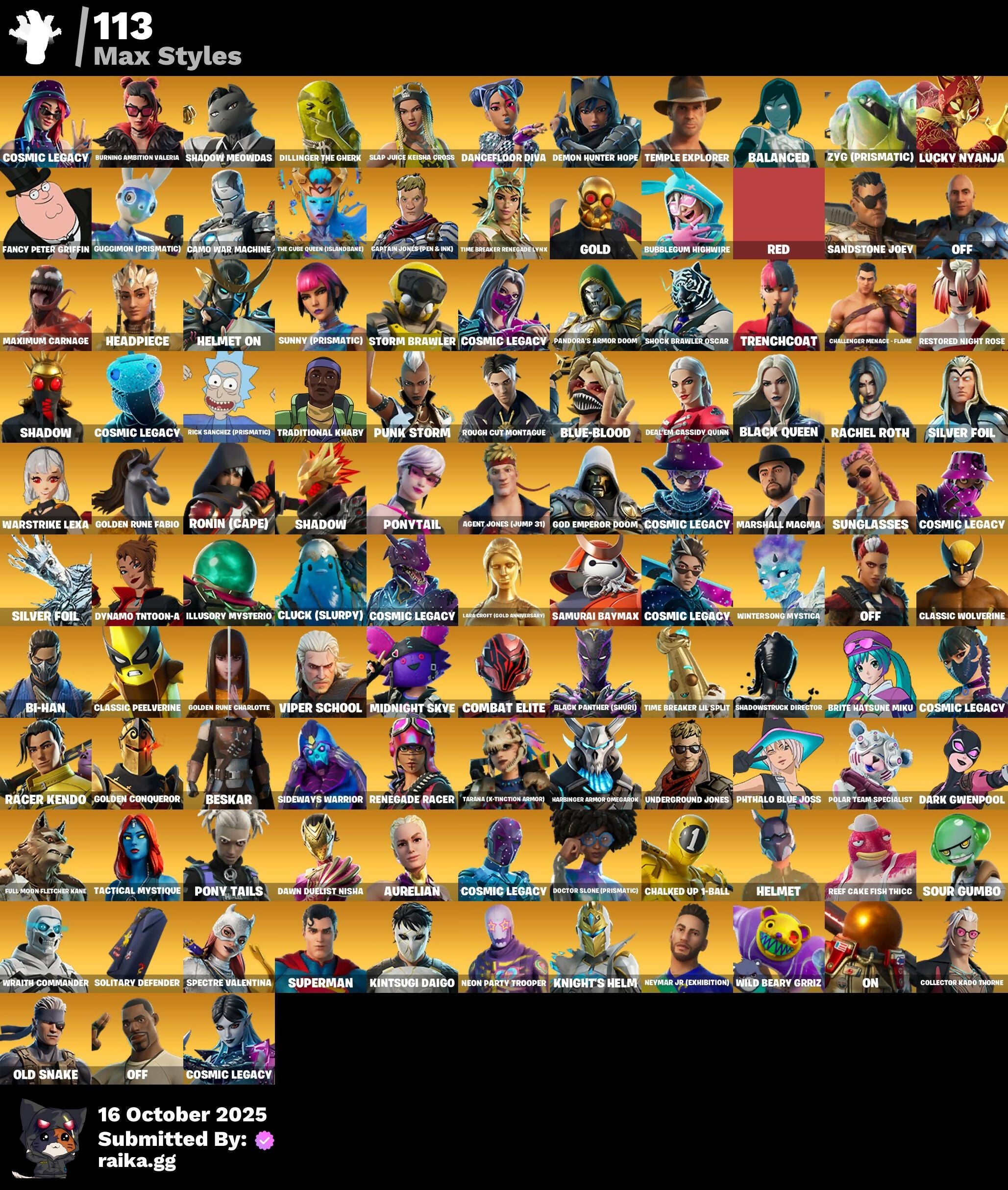 [PC/PSN/XBOX] 328 skins | Renegade Raider | FNCS 3:1 Champion | Unchained Ramirez | Naruto Uzumaki | Major Glory | Midas Rex | Spectra Knight | 1750 VB / FN