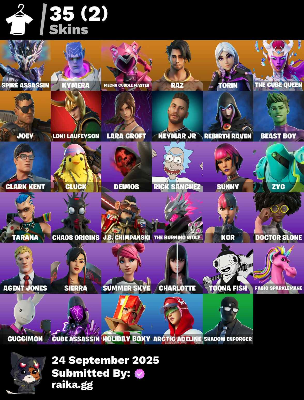 [PC/PSN/XBOX] 35 skins | Spire Assassin | Kymera | Mecha Cuddle Master | Raz | Torin | The Cube Queen | Joey | Loki Laufeyson | Lara Croft | Neymar Jr | 0 VB / FN