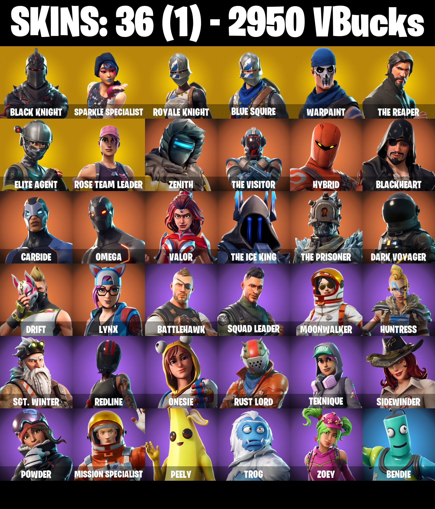 PC/PSN/XBOX |36 skins | OG STW | Black Knight | Sparkle Specialist | Royale Knight | Blue Squire | The Reaper | Elite Agent | Black Shield | #B575
