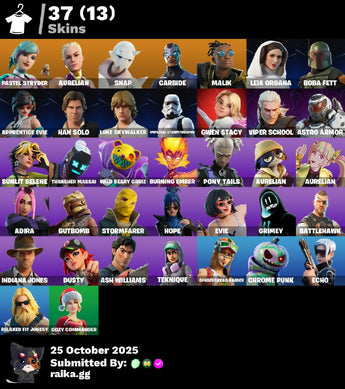 [PC/PSN/XBOX] 37 skins (3700 VB) Pastel Stryder | Aurelian | Snap | Carbide | Malik | Leia Organa | Boba Fett | Apprentice Evie | Han Solo | Luke Skywalker #590