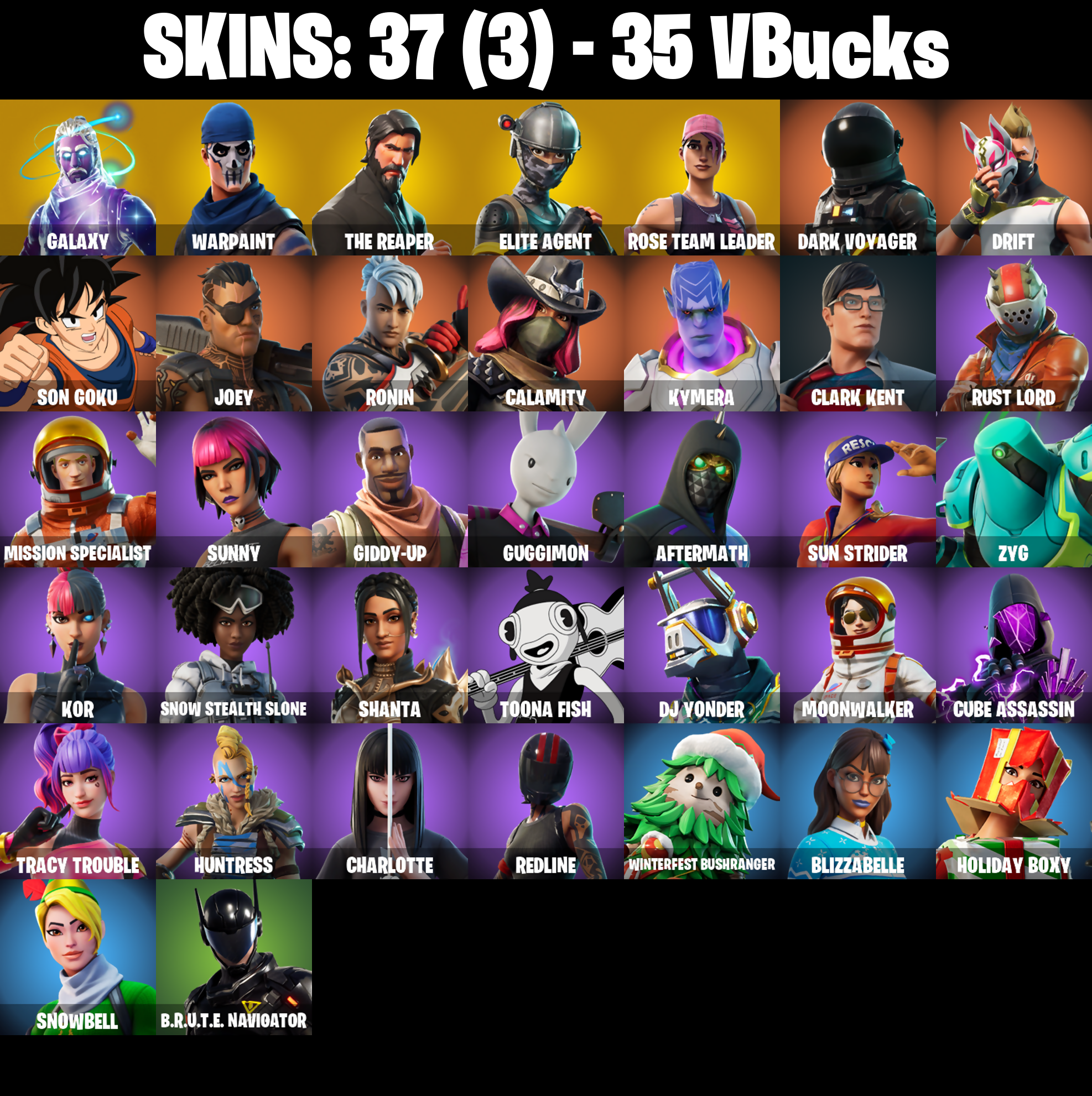 PC/PSN/XBOX |37 skins | OG STW | Galaxy | The Reaper | Elite Agent | Take The L | Orange Justice | Dark Voyager | Drift | Trusty No. 2 | #B689