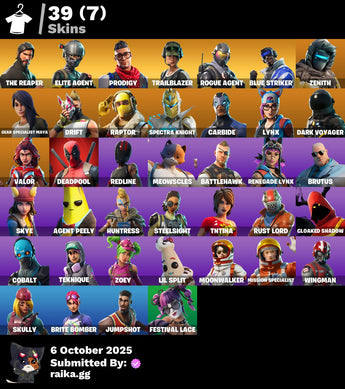[PC/PSN/XBOX] 39 skins | The Reaper | Elite Agent | Prodigy | Trailblazer | Rogue Agent | Blue Striker | Zenith | Gear Specialist Maya | Drift | Raptor | 300 VB / FN